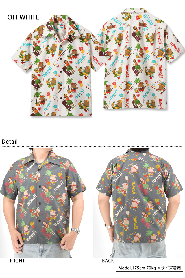 | コットンシアサッカーアロハシャツ「TRIP TO HAWAII」by 柳原良平 with MOOKIE◆SUN SURF SUN-M01521 | ||||||||||||||||||||||||||||||