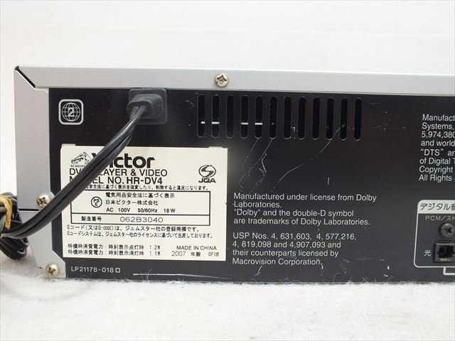 | ◆商品◆ メーカー---------Victor ビクター 型式-------------HR-DV4 付属品-----------画像に写っているものがすべてになります。 ◆外装ランク◆ 【 C 】 ◆状態◆ 中古品の為キズや汚れなどの使用感はご容赦ください。 VHSの再生、音出しOK DVDトレー開閉できず、再生動作出来ません 現状品での出品となります。 【重要】配送送料と送料に送料が0円と表示される場合がございますが、出品画面に記載の送料が落札後にご精算されます。 | |||||||||||||||||