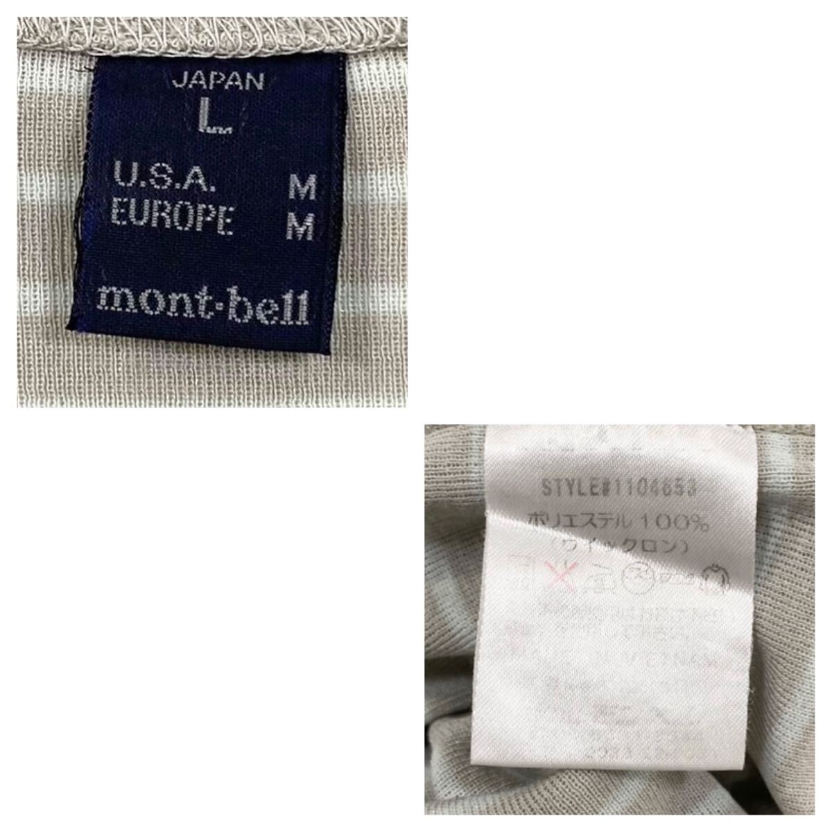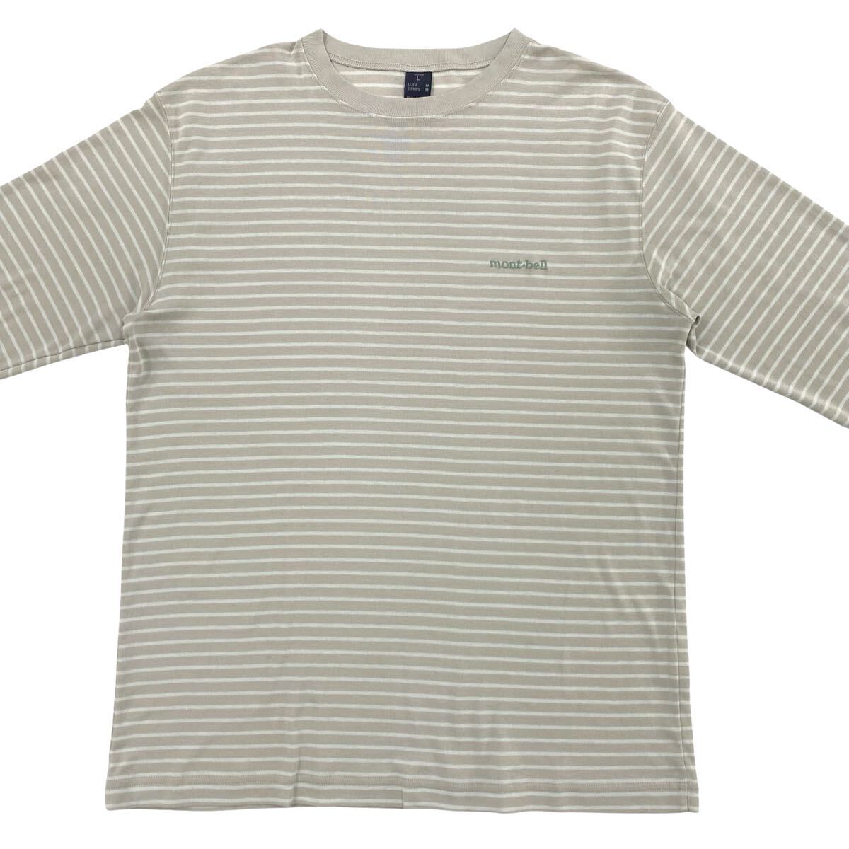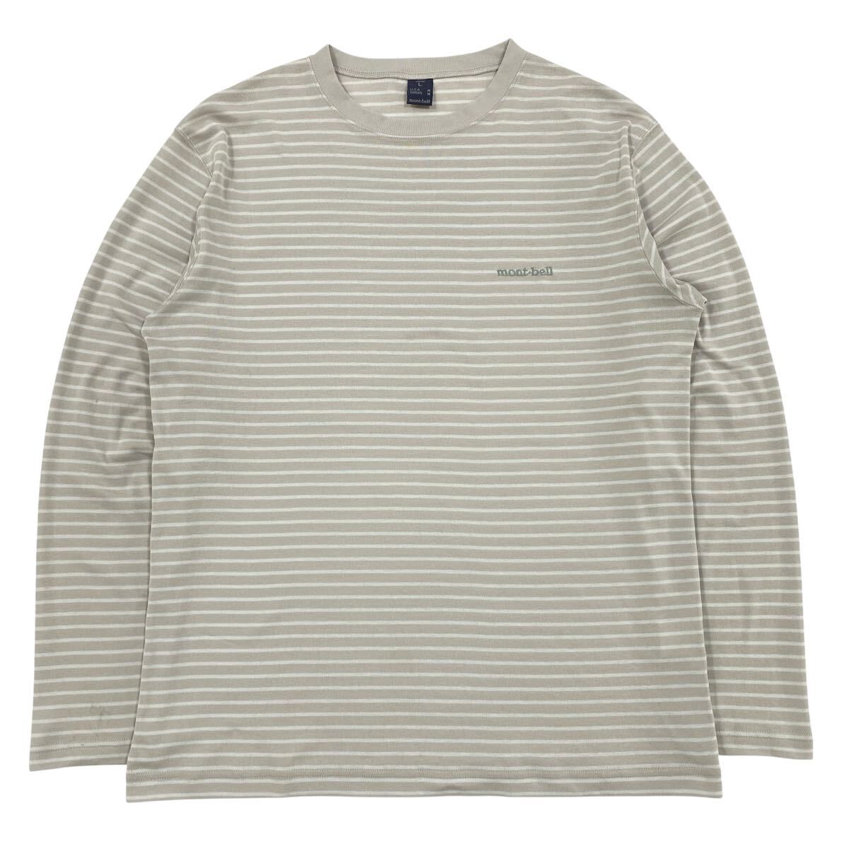 【mont-bell(モンベル)WIC.長袖カットソー ロンT 刺繍ロゴ メンズL グレー系/ブルー系】