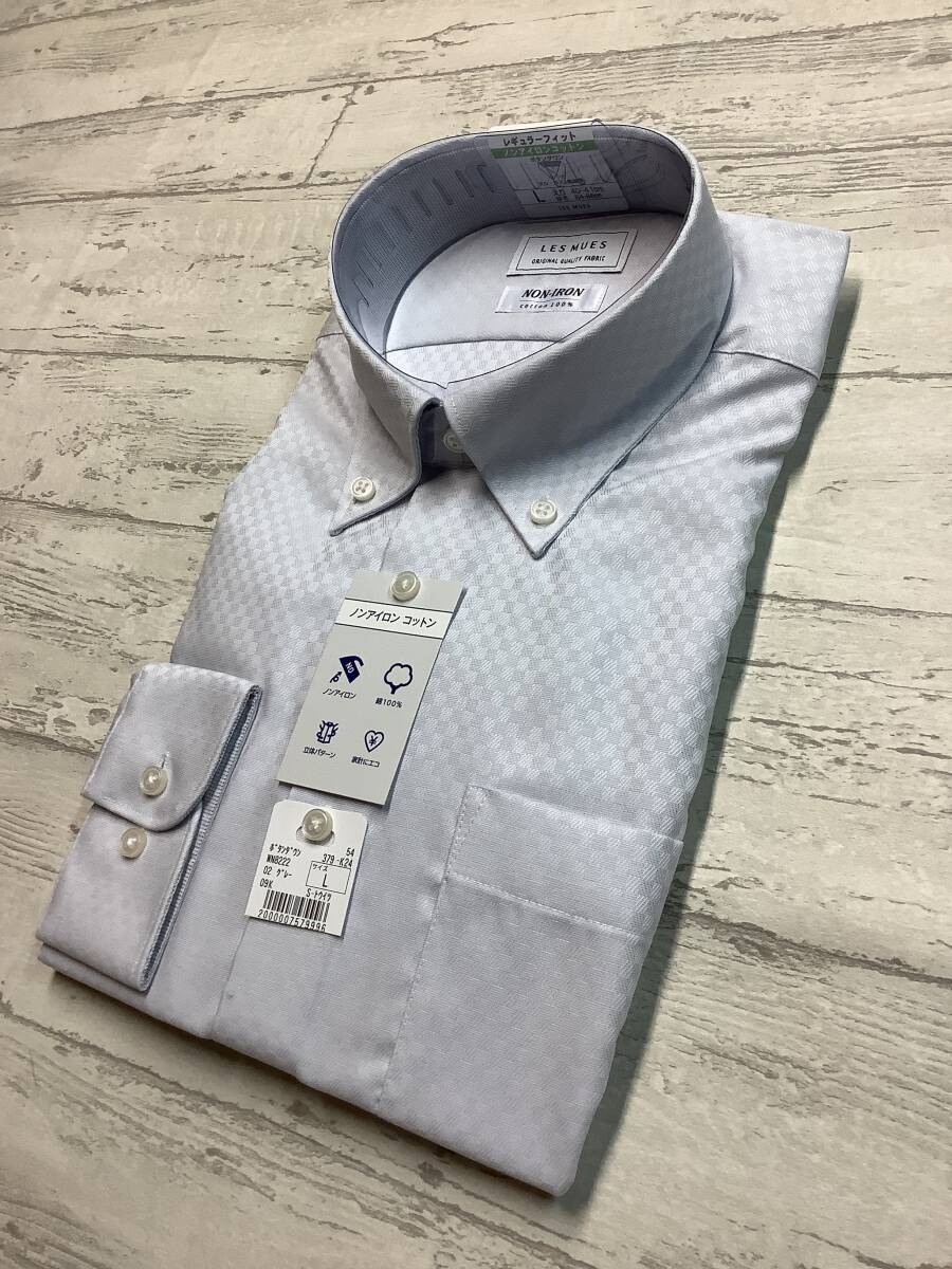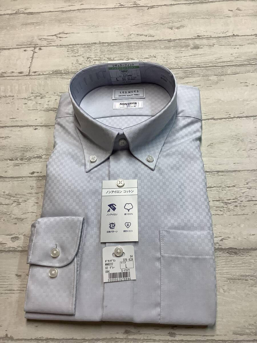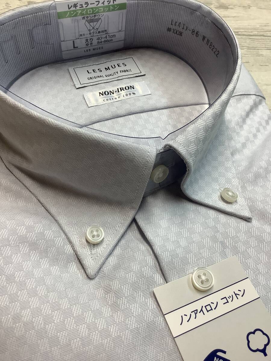 新品未使用★41-86 長袖Lサイズ  綿100% ノンアイロンコットン ★ボタンダウンドレスシャツ グレーチェック柄