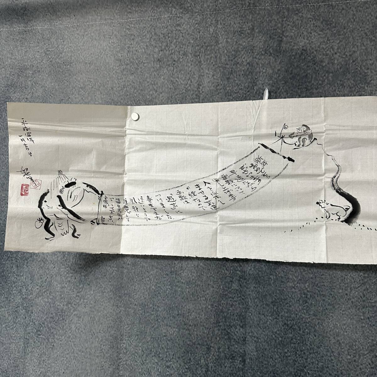 商品名:【真作】笹川和也 「遊芸」蛙図 紙本 日本画 掛軸 美術 骨董 共箱 鳥獣戯画 戯画作家 蛙画家 国際墨画協会理事
