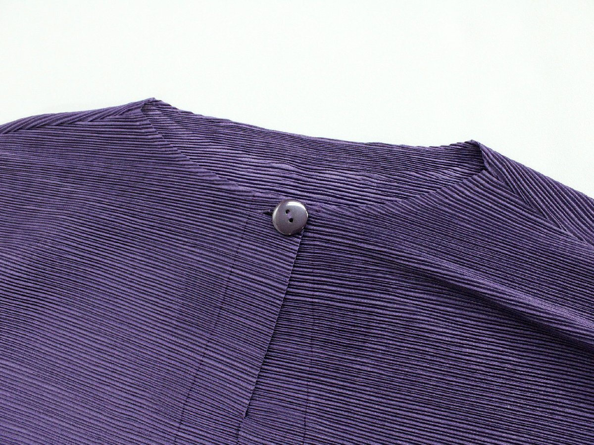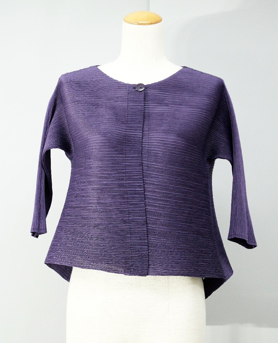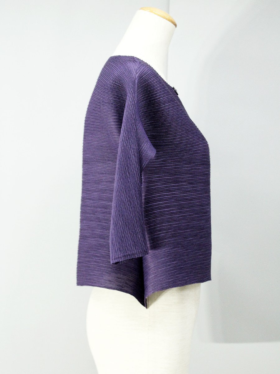 美品 コイビトミサキ ラウンドネック5分袖ショートプリーツカーディガン 紫M-L rl368