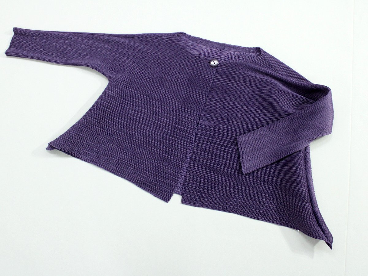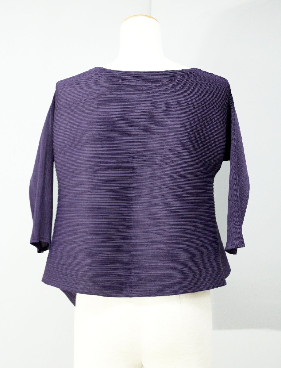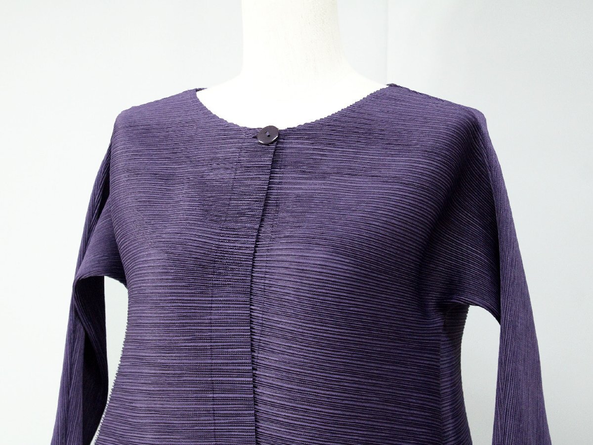 美品 コイビトミサキ ラウンドネック5分袖ショートプリーツカーディガン 紫M-L rl368