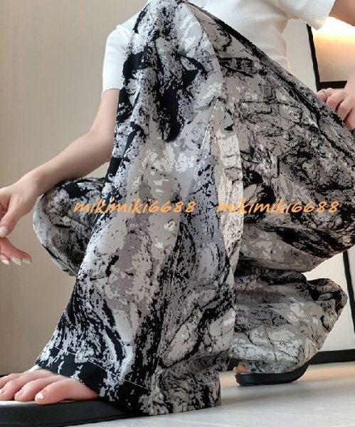 とっても個性的なモノトーンカラーのワイドパンツです。