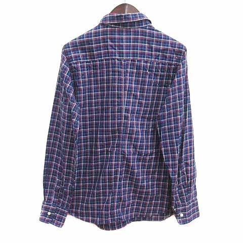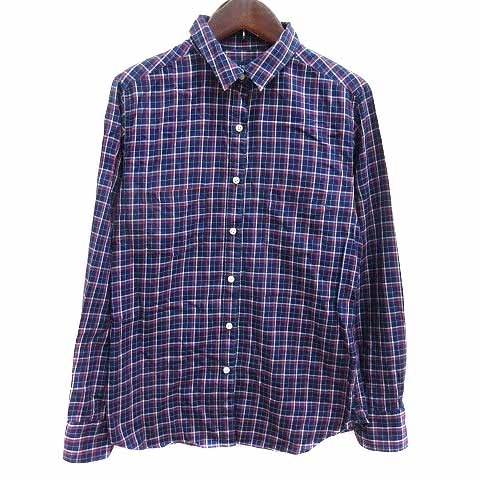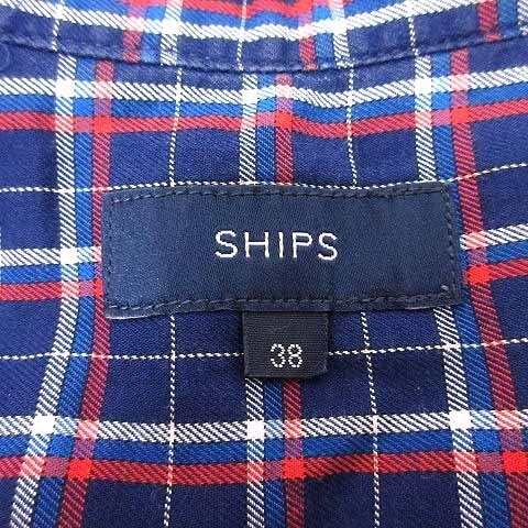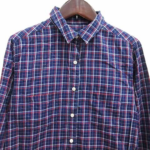 シップス SHIPS シャツ ブラウス チェック 長袖 38 M 紺 ネイビー 赤 レッド /YK レディース