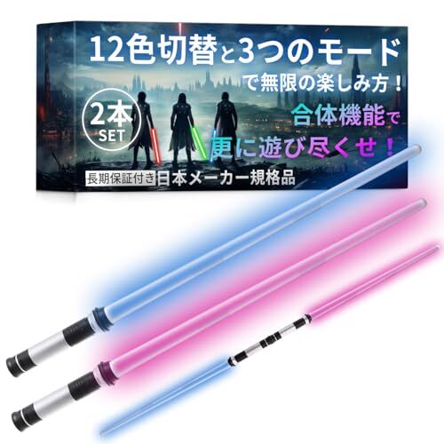 「ライトセーバー 2本セット日本メーカー企画品(長期付き)12色切替と3つのモードで無限の楽しみ方x合体機能で更に遊び尽くせ映画の主人公気分でお子」▼4580526380023▼(商品説明)12色切替×3つのモードで無限の楽しみ方映画の主人公気分を体感しよう光の色を12色に切り替え可能です。さらに5つのモードで戦い、遊びの演出も自由自在です。お気に入りの色やモードを組み合わせて映画のような本格バトルを楽しめます。・合体機能で遊び尽くせお子様も大人も夢中に友達やご家族でバトルしたいなら2本セットが断然お得ですしかも2本を1本に合体させれば、迫力満点の新しい遊び方が広がりますこれ一つで遊び尽くせるライトセーバーセットです。・ハロウィンのコスプレやお子様へのプレゼントにも映画のキャラクターになりきれるアイテムとしても大人気です。イベントを盛り上げること間違いなし。・日本メーカー規格品90日付き購入日から90日間の返金をつけさせていただいておりますので、安心してお買い求めください。お客様のモニター環境等により実際の物と素材感、色が多少異なる場合がございます。商品の説明 12色切替×3つのモードで無限の楽しみ方映画の主人公気分を体感しよう光の色を12色に切り替え可能です。さらに5つのモードで戦い、遊びの演出も自由自在です。お気に入りの色やモードを組み合わせて映画のような本格バトルを楽しめます。 安全警告 直射日光からは避けて保管ください。