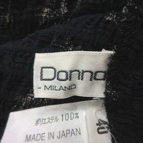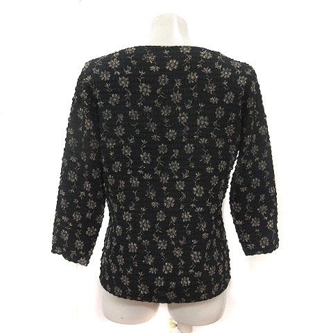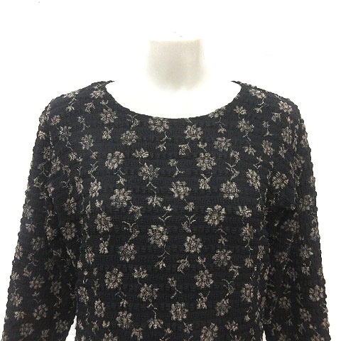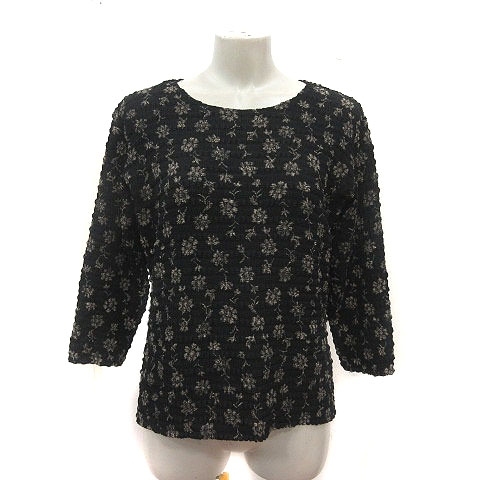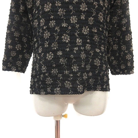 ディミトリドナ Dimitri Donna カットソー クルーネック リップル 花柄 七分袖 40 黒 ブラック ベージュ /MS レディース