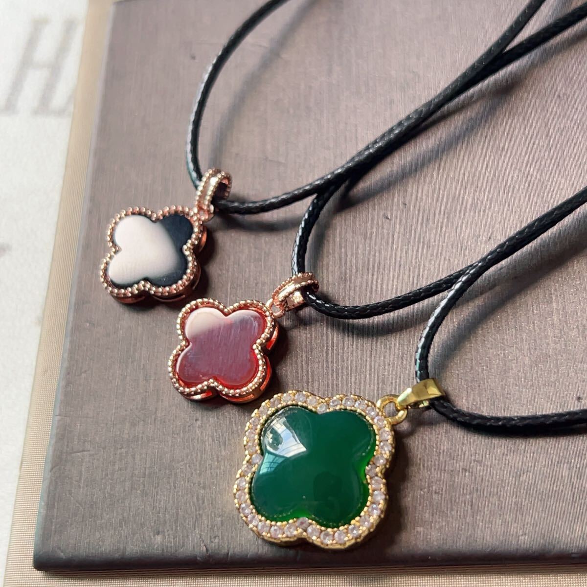 ◇3点セット◇瑪瑙◇メノウ◇アゲート◇ネックレス◇ペンダント◇クローバー形彫刻◇天然石◇パワーストーン◇プレゼントにも020S6259