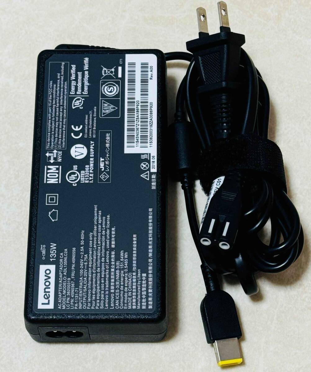 【動作保証付】 純正 レノボ Lenovo 135W ACアダプター 20V 6.75A ADL135NLC2A 四角コネクター 電源接続ケーブル付【送料無料】
