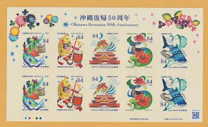 【記念切手】 沖縄復帰50周年《84円》 (シール式)