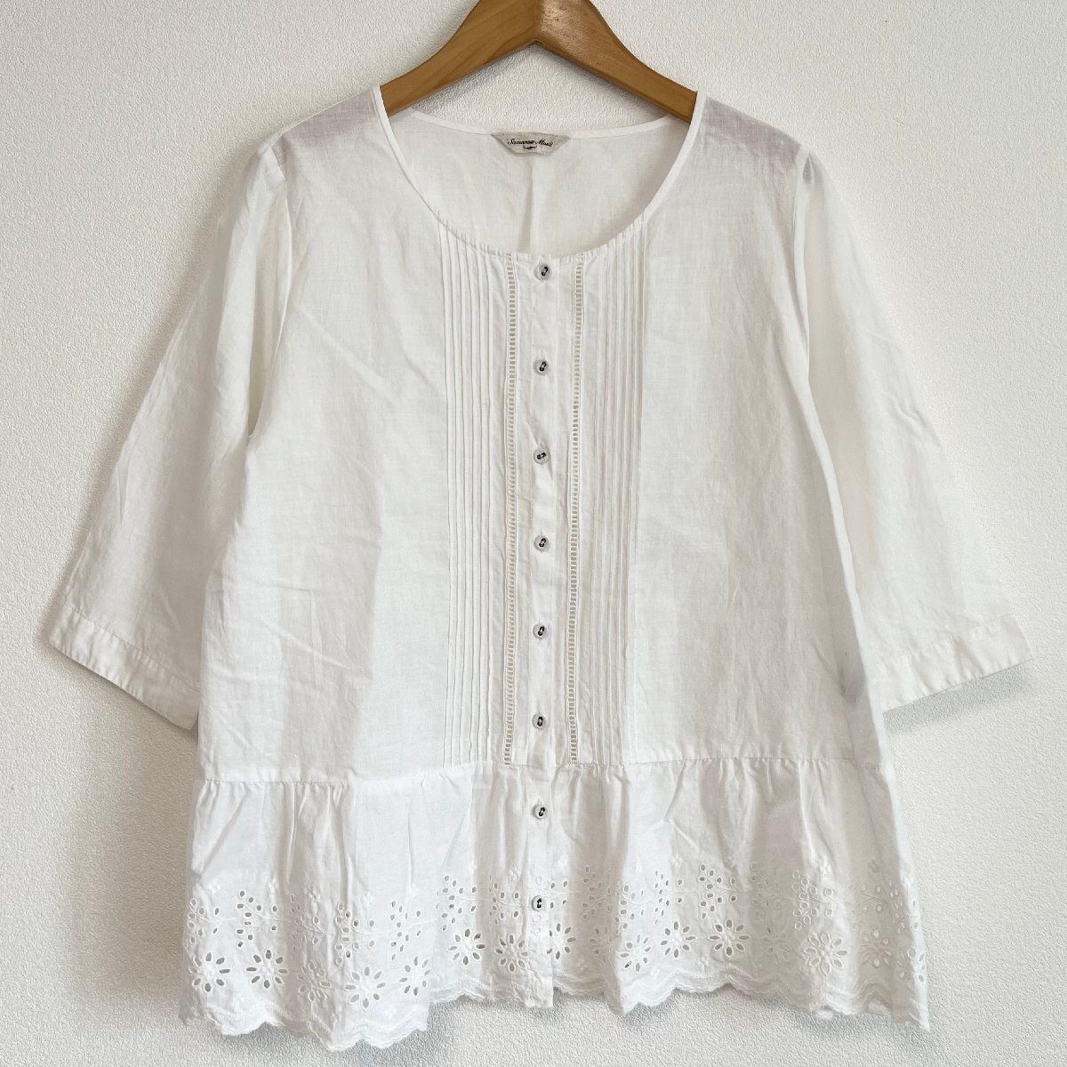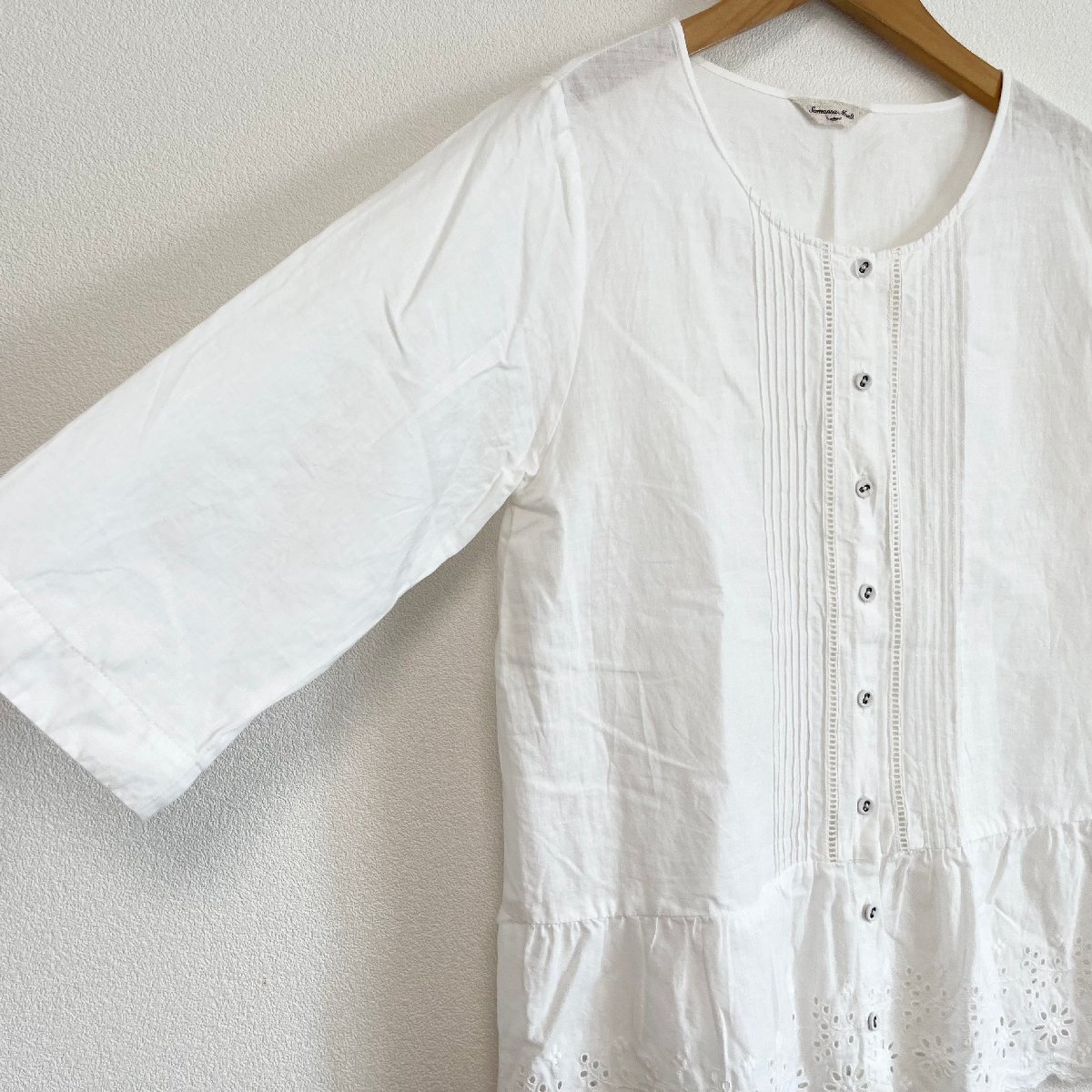 | アイテム | 7分袖 透け感 綿麻 レース ブラウス |