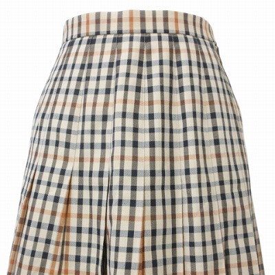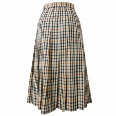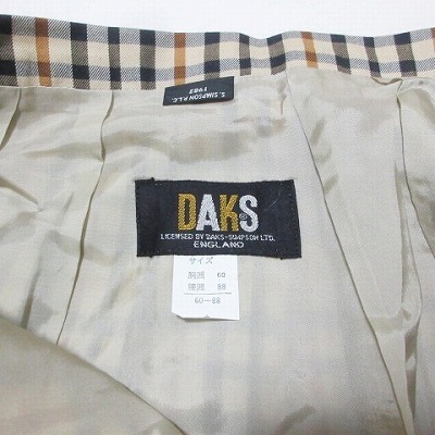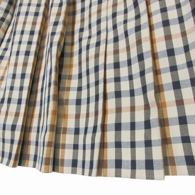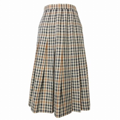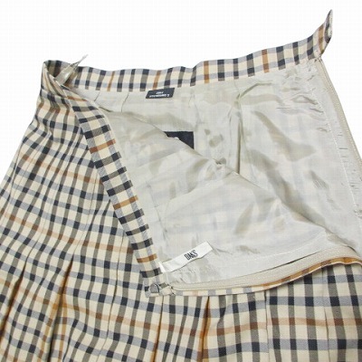ダックス DAKS プリーツスカート ハウスチェック 膝下丈 60-88 XS~S相当 ベージュ系 X レディース