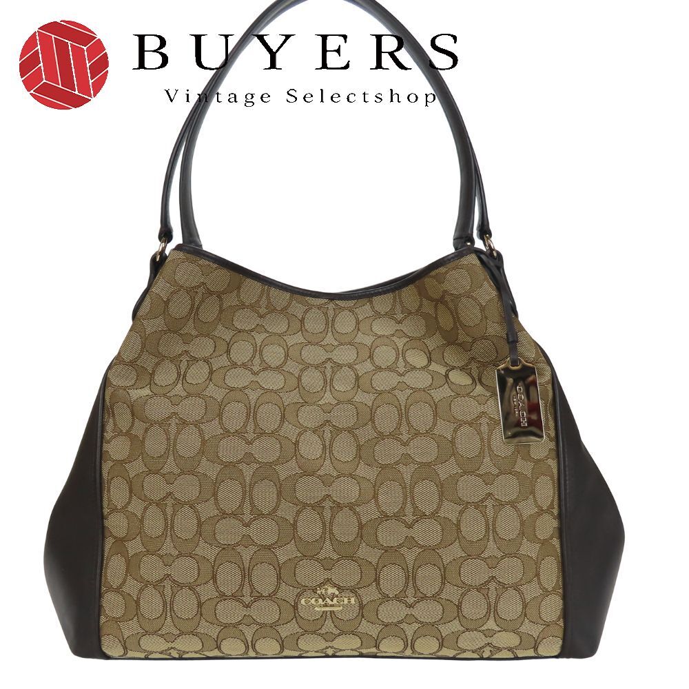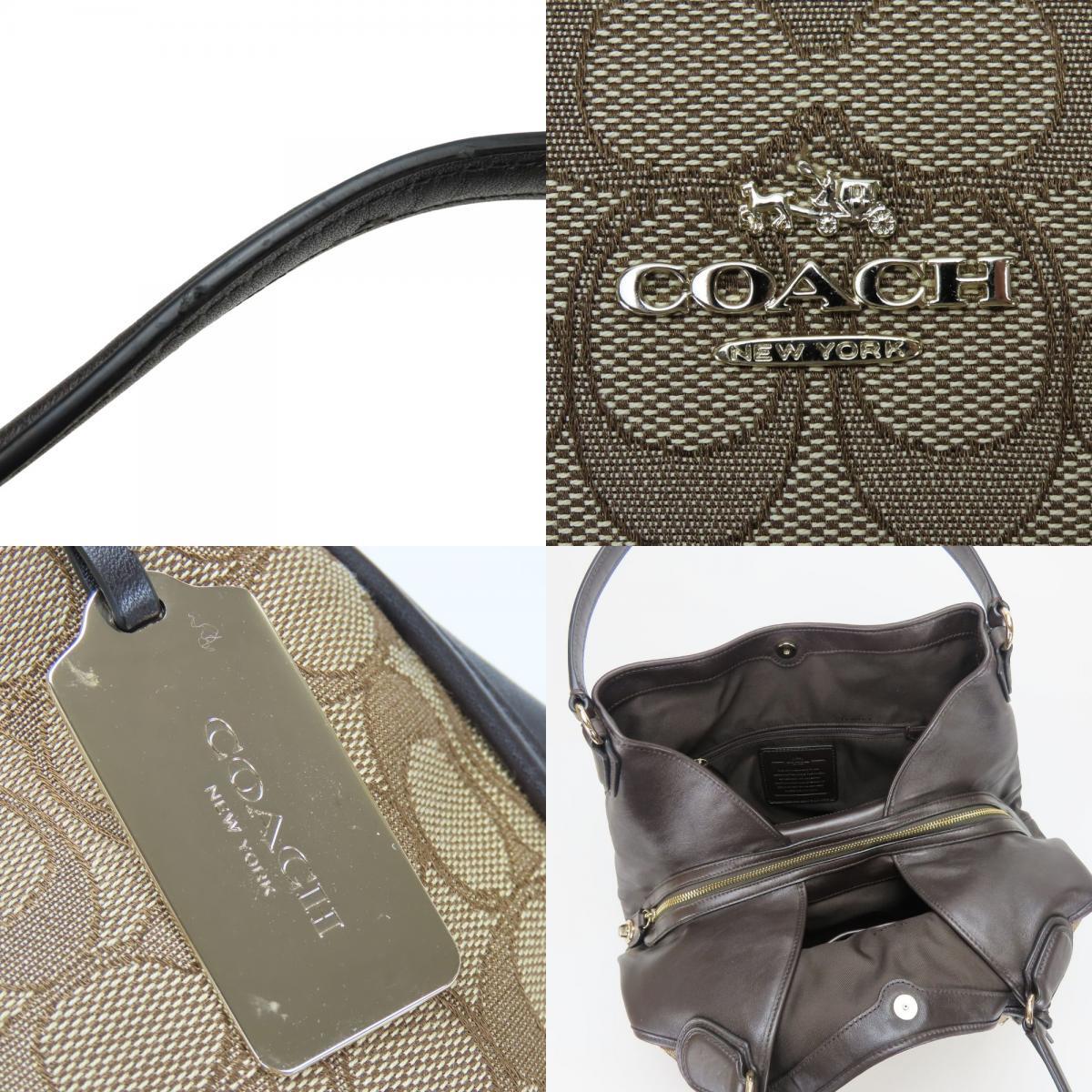 中古 コーチ トートバッグ 33523 シグネチャー キャンバス レザー ブラウン ダークブラウン 肩掛け カジュアル 普段使い レディース 女性