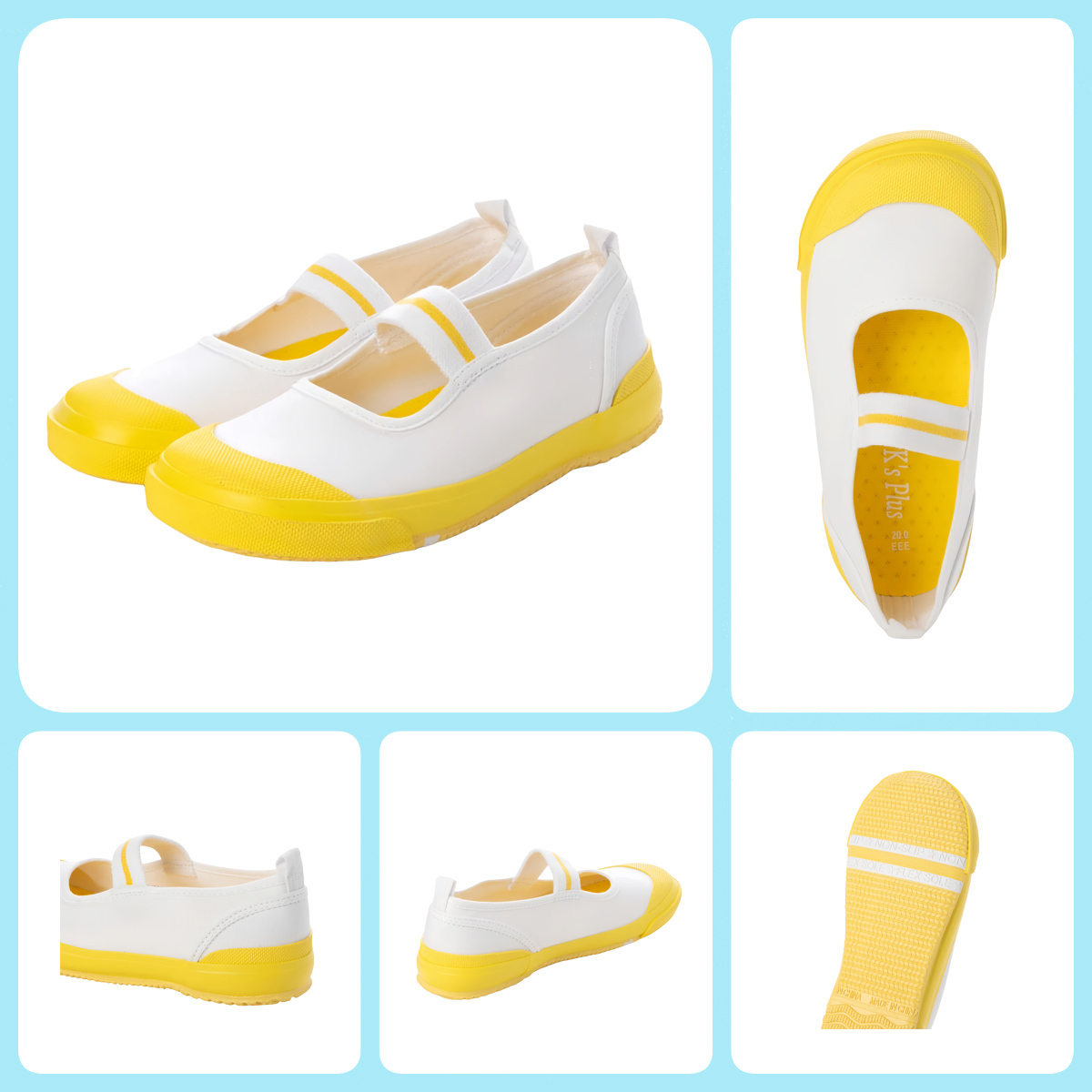 2色コンビのデザインがかわいい靴底は、足の曲がりと同じ位置で曲がるフレックスソールを採用、柔軟性・屈曲性・耐摩耗性に優れています。