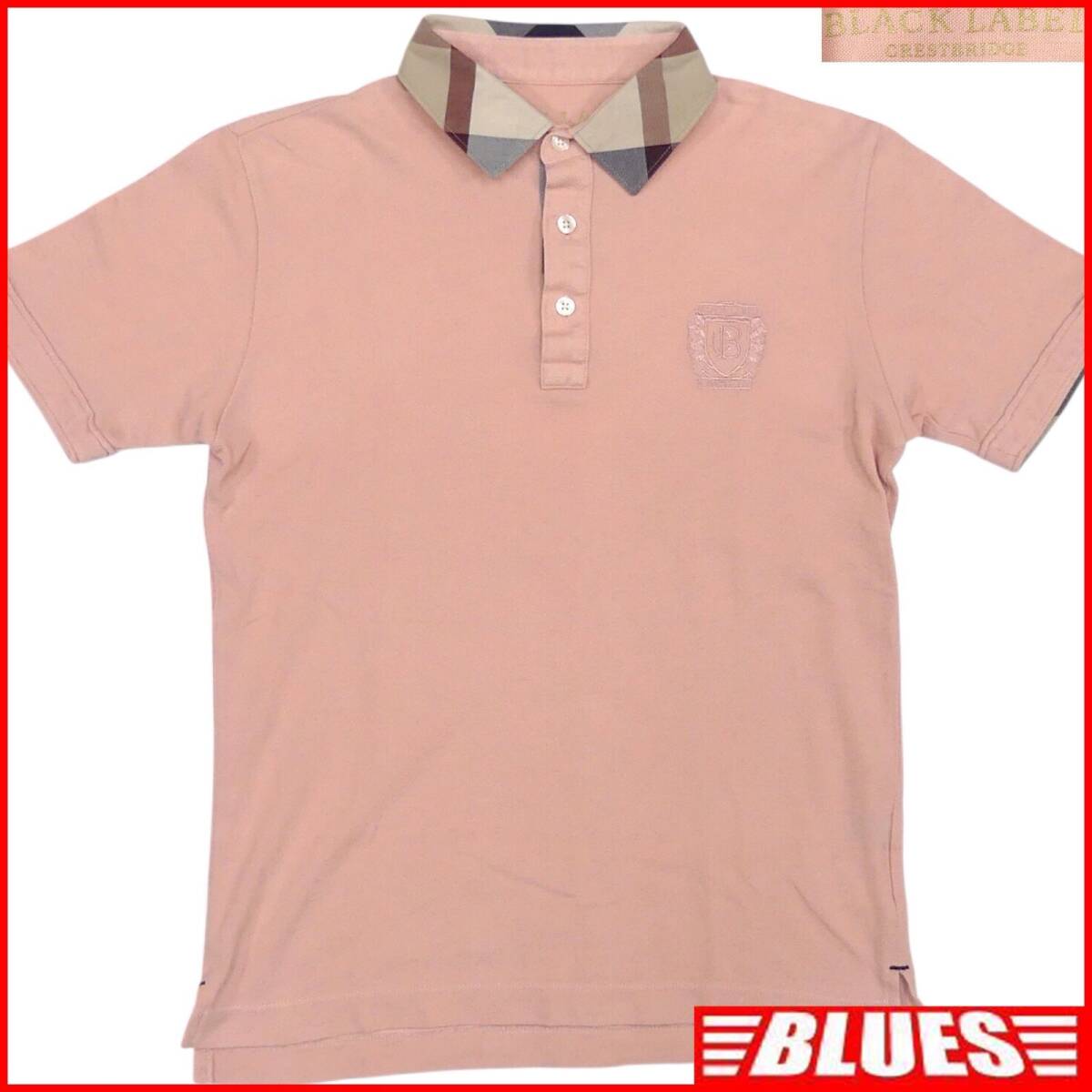 即決★BLACK LABEL CRESTBRIDGE★メンズ M 廃版 ポロシャツ ブラックレーベルクレストブリッジ ピンク チェック 三陽商会 刺繍