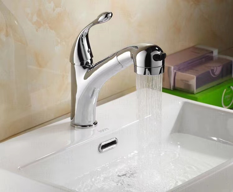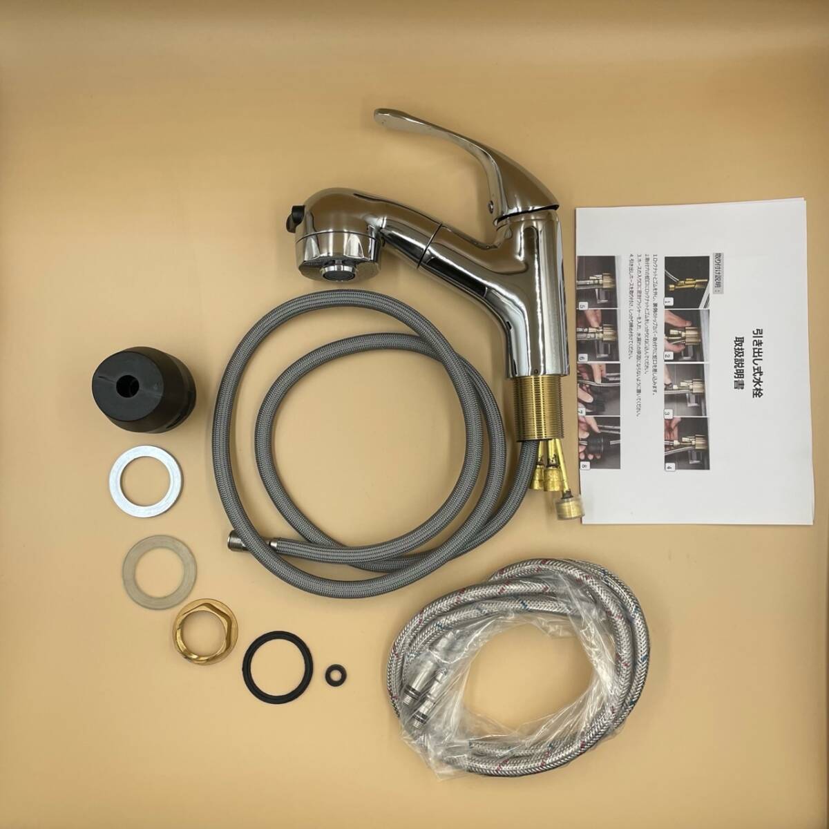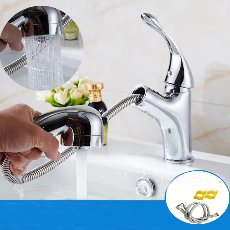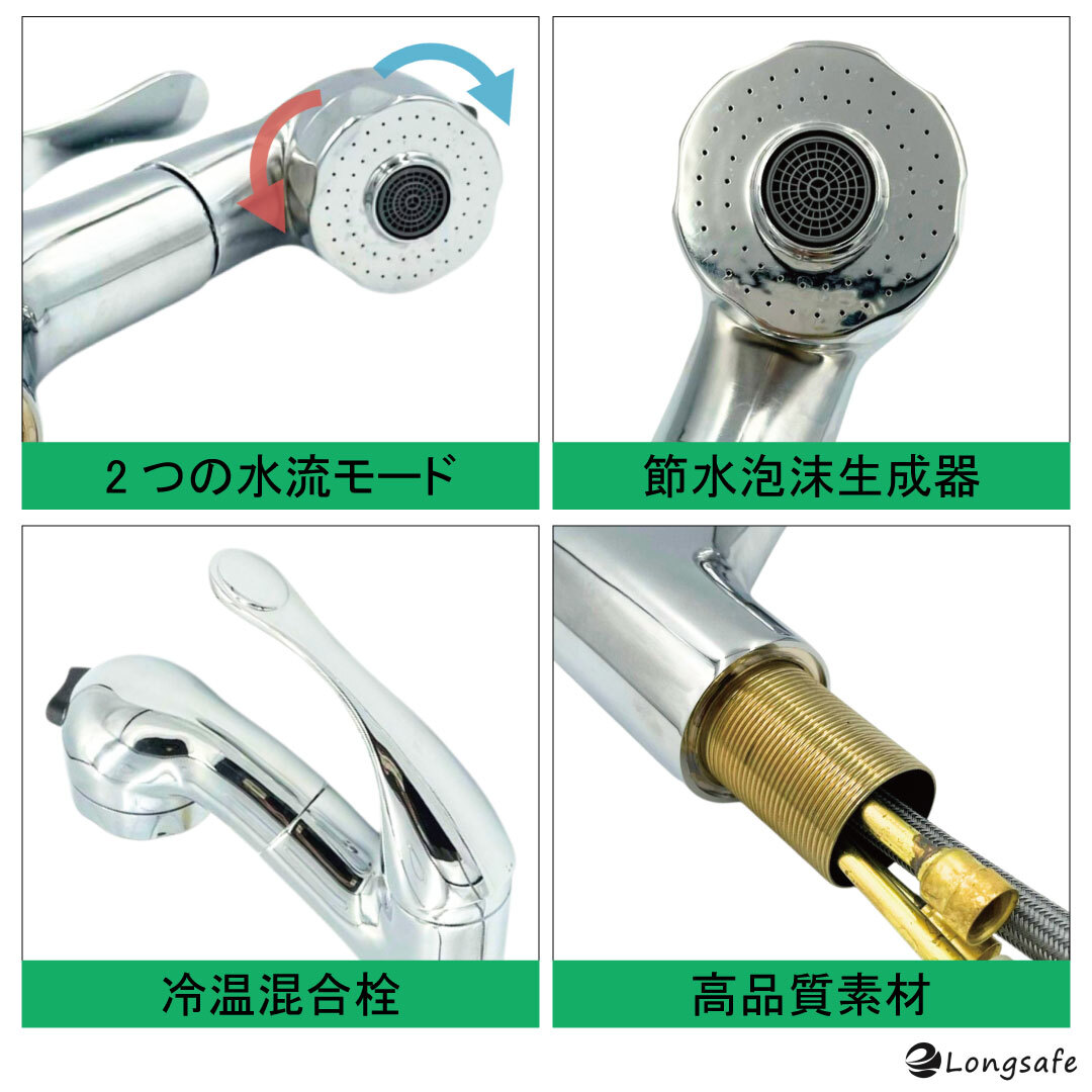 (A) 洗面蛇口 混合水栓 水栓 シャワー付き ホース 引き出し式 シングルレバー 切り替え キッチン 洗面台 浴室 ワンホール 交換 家庭用