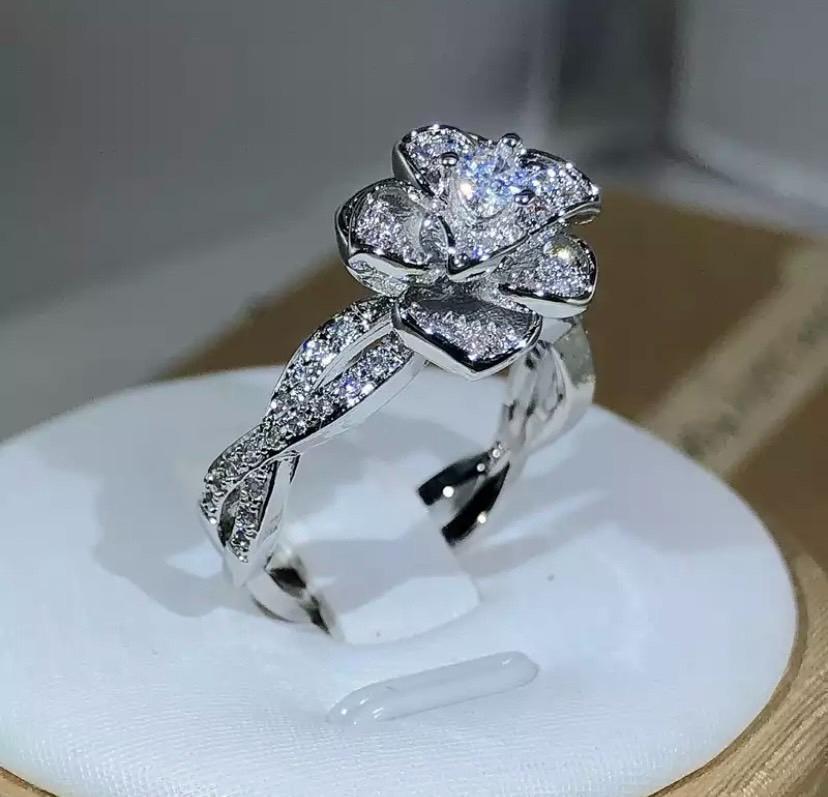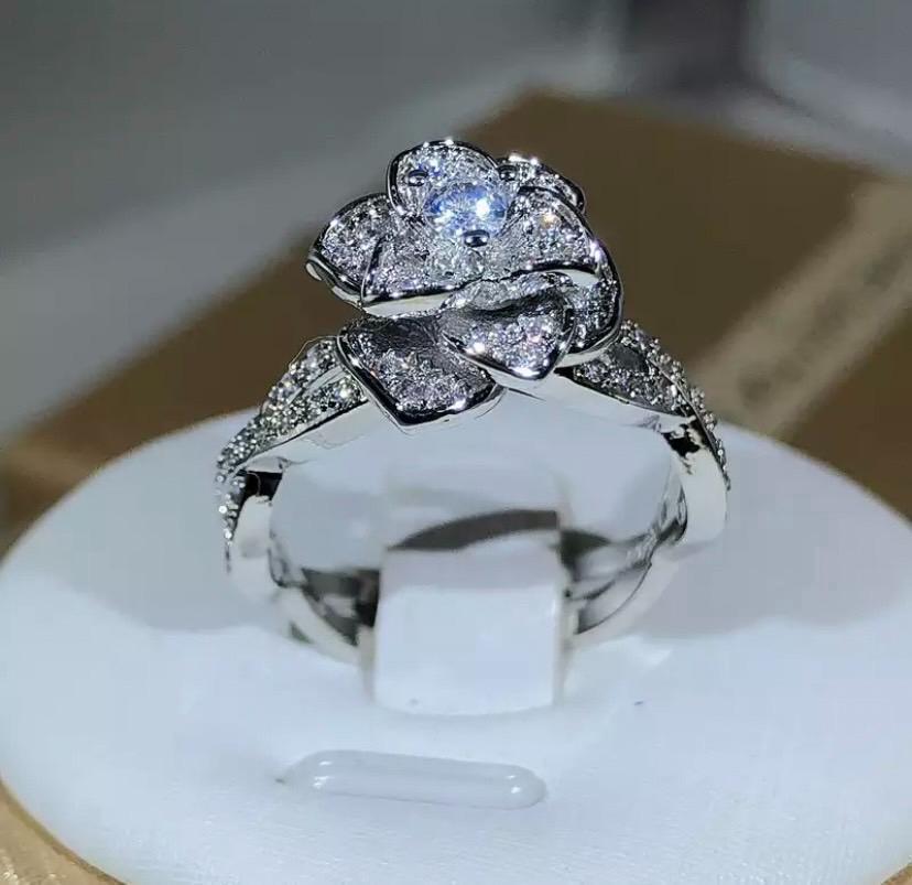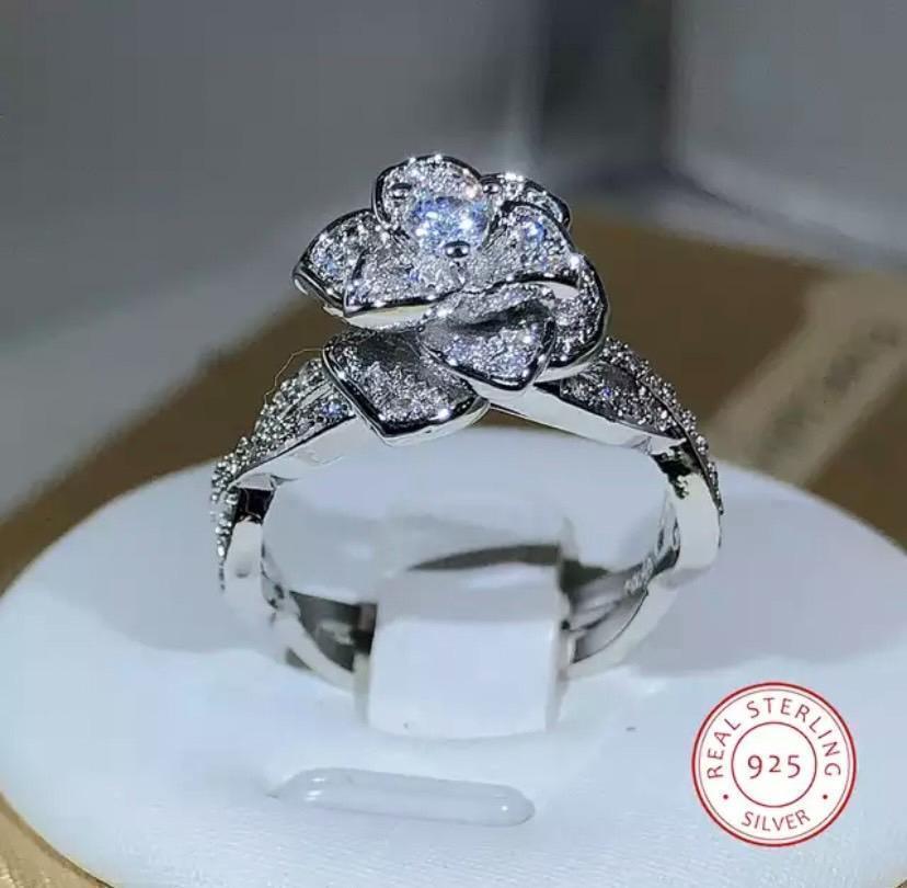 618 シルバー 薔薇 リング s925 czダイヤモンド ローズ ジュエリー アクセサリー ブライダル ストーン 結婚式 ドレス 韓国 ジルコニア