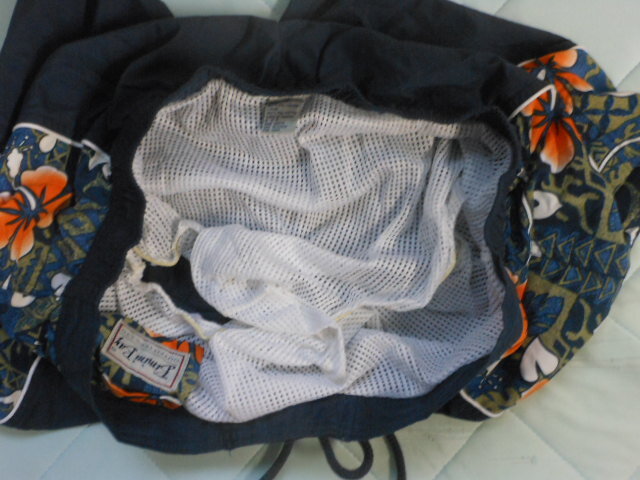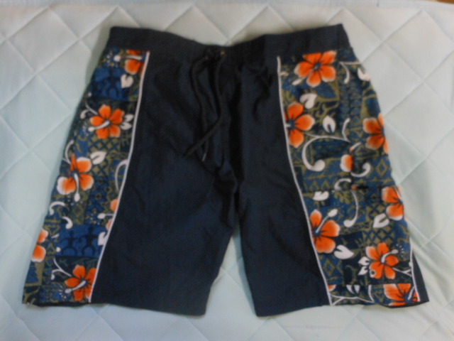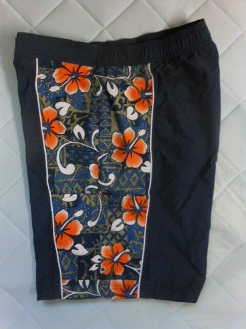 『送料無料』◆サーフパンツ 紺 x ボタニカル柄 ◆ウエスト 胴囲 99-108cm 総丈 53cm