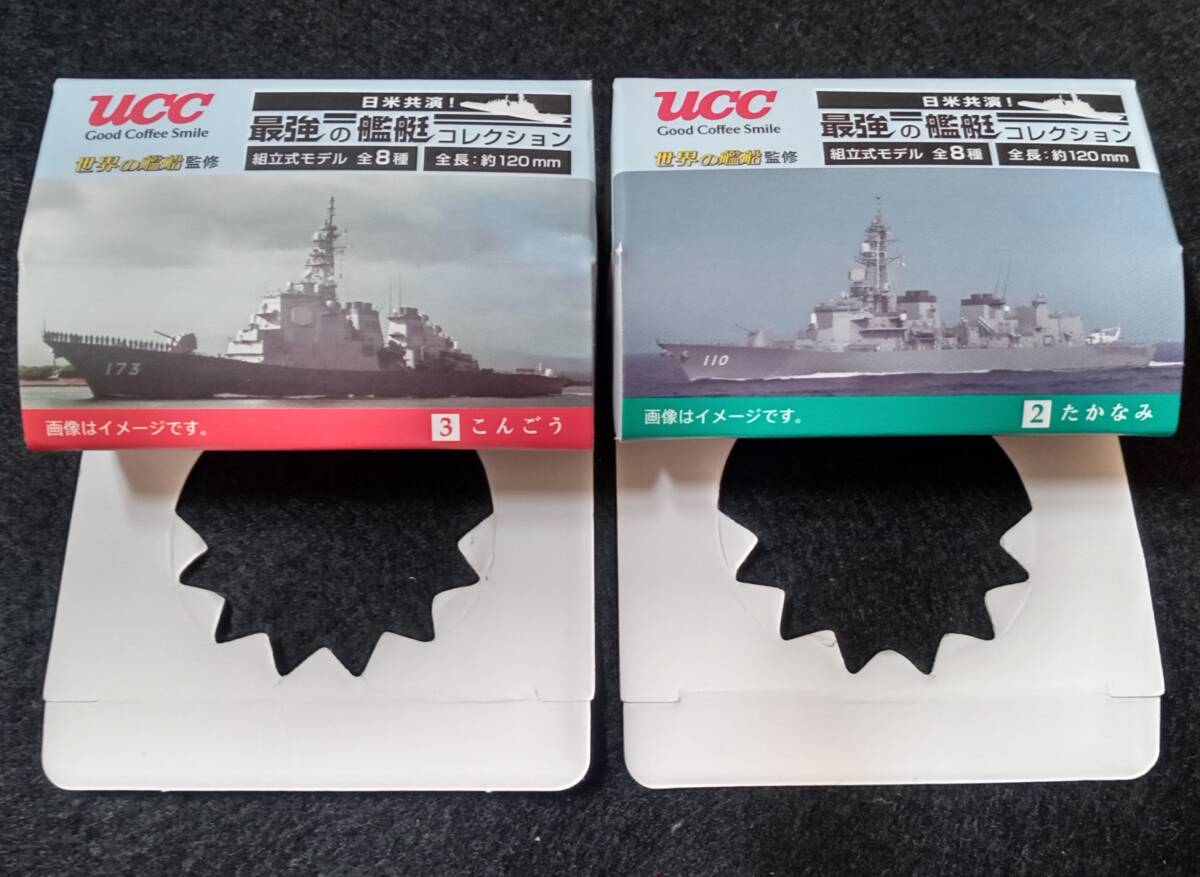 UCCボトル缶コーヒーのオマケ 「日米競演!最強の艦艇コレクション(『世界の艦艇』監修)」 のABS樹脂製の組立式モデル 「こんごう」 と 「たかなみ」 をセット出品します。