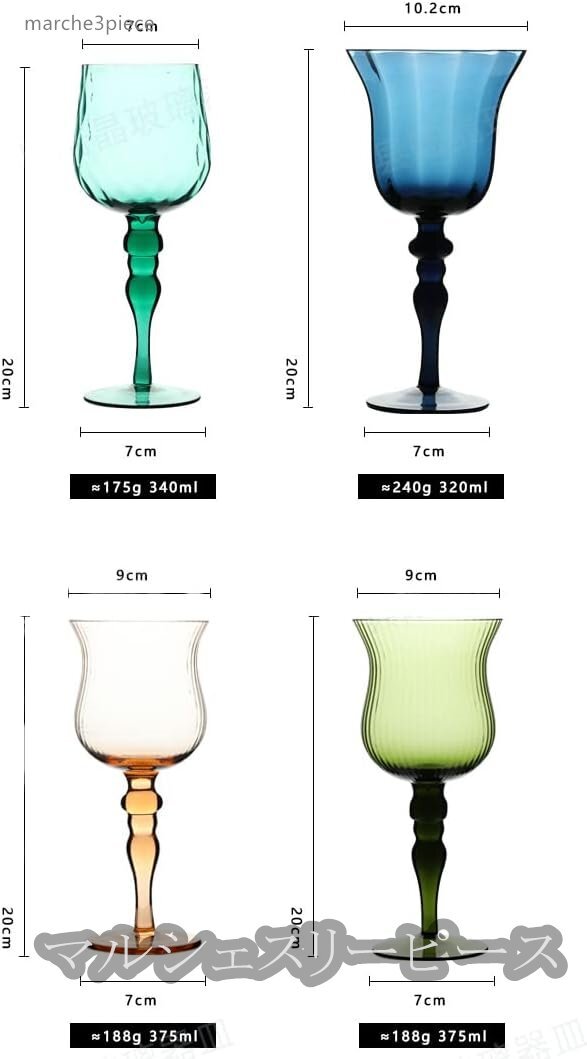ワインやシャンパン、カクテル、水などを飲むのに適した、古風な外観のワイングラスです。