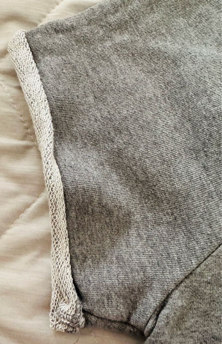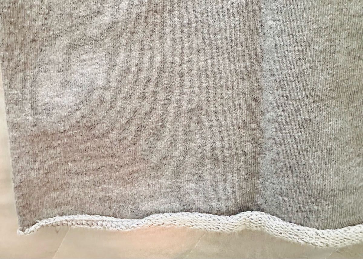 袖と裾は切りっぱなしのため、くるくる巻いています。