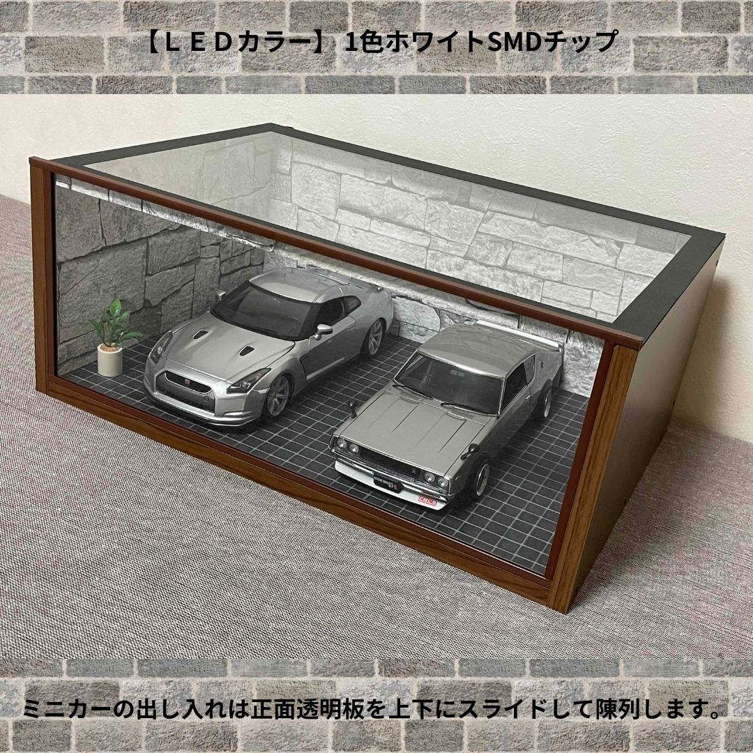 ☆1/18ガレージ ジオラマS フリータイプLED付きX63☆コレクションケース☆ケンメリ☆スカイライン☆ミニカーケース☆GT-R☆収納☆