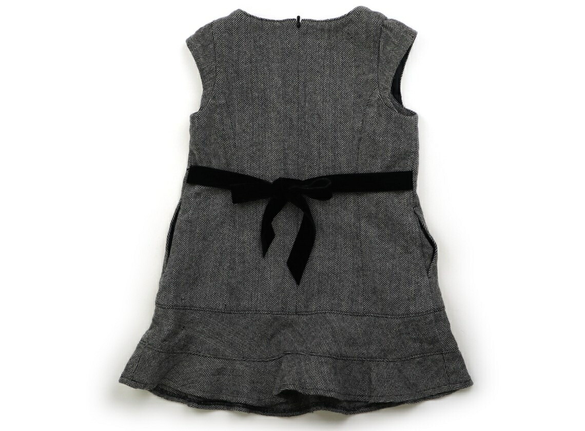 後ろファスナー。ポケット付き。裏地付き。全体的に使用感あり。裾に茶色いシミがあります。リボンに毛羽の付着があります。まだまだ普段着として活躍してくれそうです。