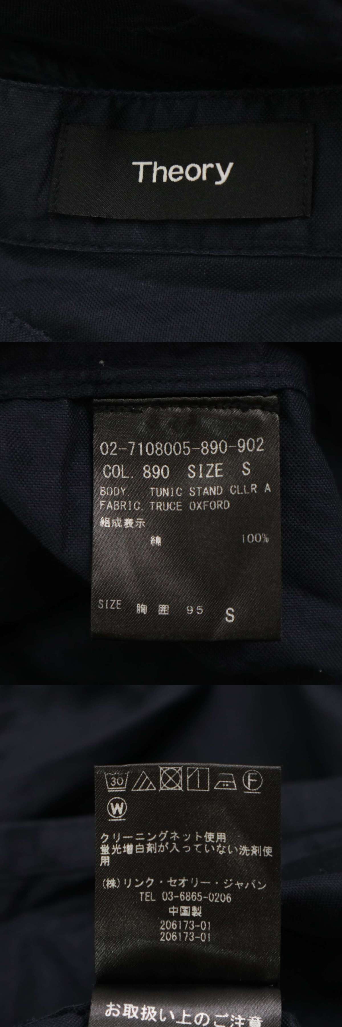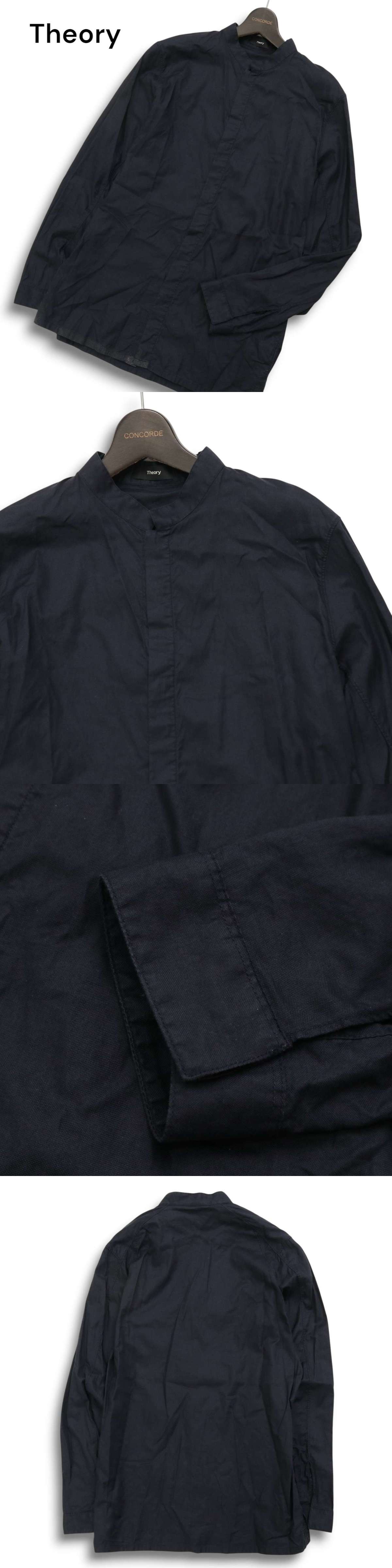 Theory セオリー 通年 【TRUCE OXFORD TUNIC STAND CLLR A】 長袖 バンドカラー シャツ Sz.S メンズ 紺 ネイビー