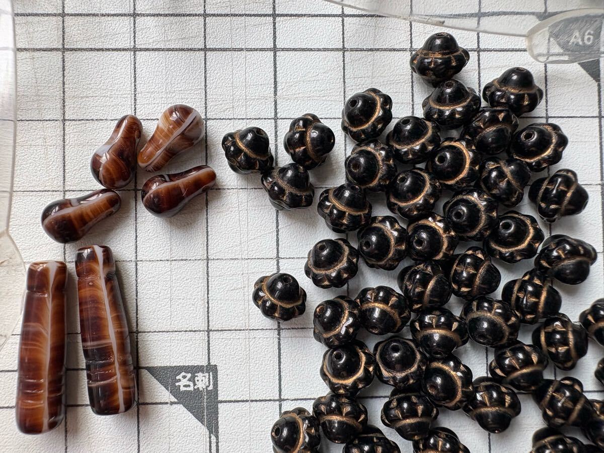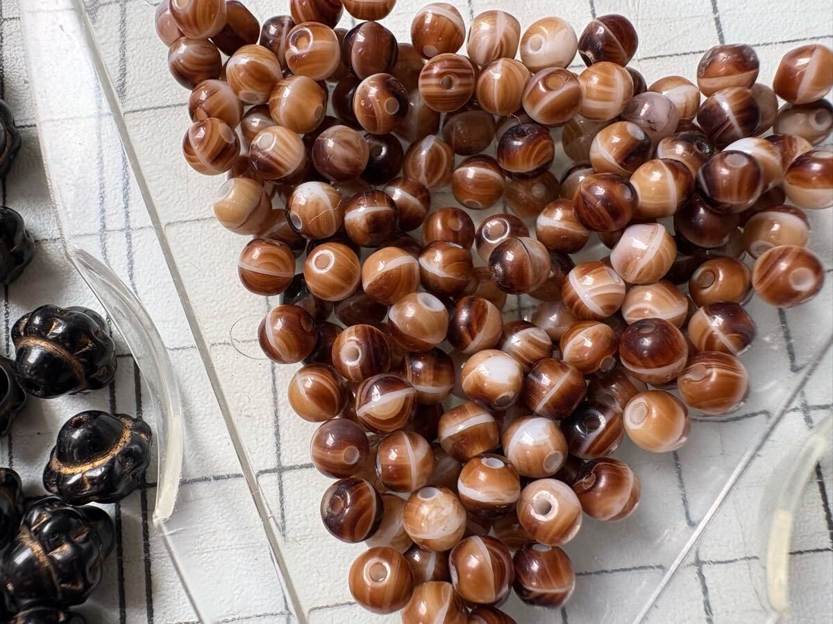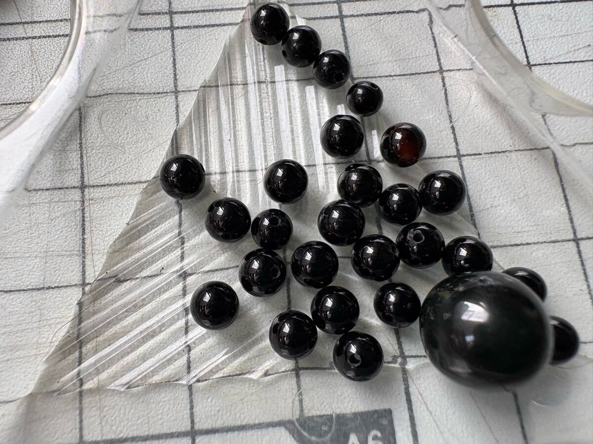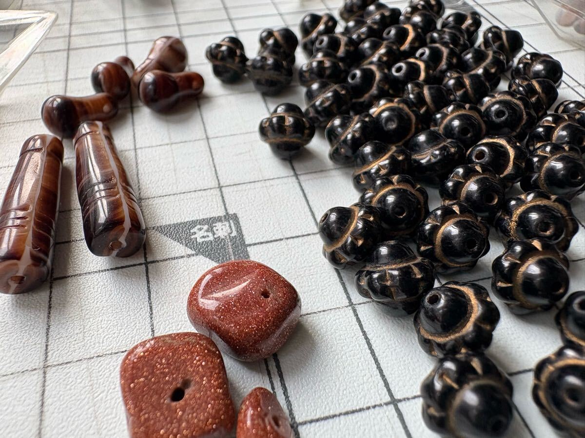 小さい丸玉はプラスチックかもしれません。石の種類はよく分かりません。