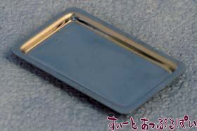 ステンレスのきれいな長方トレイです。お盆のように使えると思います。是非貴方のミニチュアライフにお役立てください!サイズ33x22ミリ、厚み約1.5ミリ。