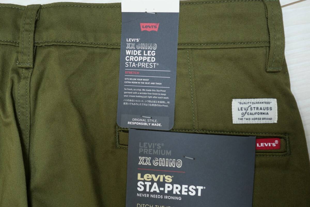 新品リーバイスA1223-0004 W32 STA-PREST XX CHINO ワイドレッグ クロップ カーキ オリーブ/グリーン スタプレ チノ BIG-E