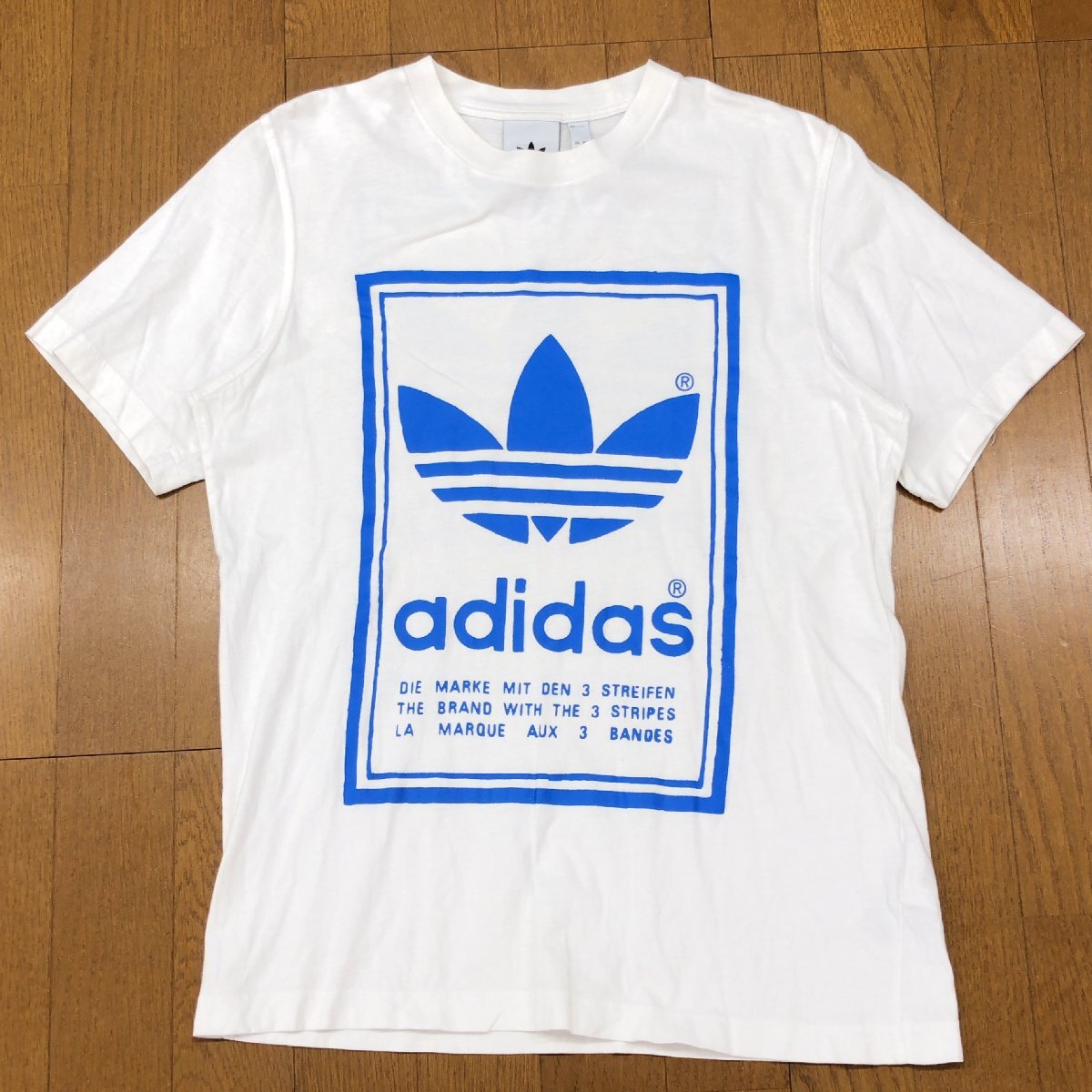 adidas originals アディダスオリジナルス ボックスロゴ トレフォイル Tシャツ S 白 ホワイト 半袖 コットン ヴィンテージ加工 スポーツMIX