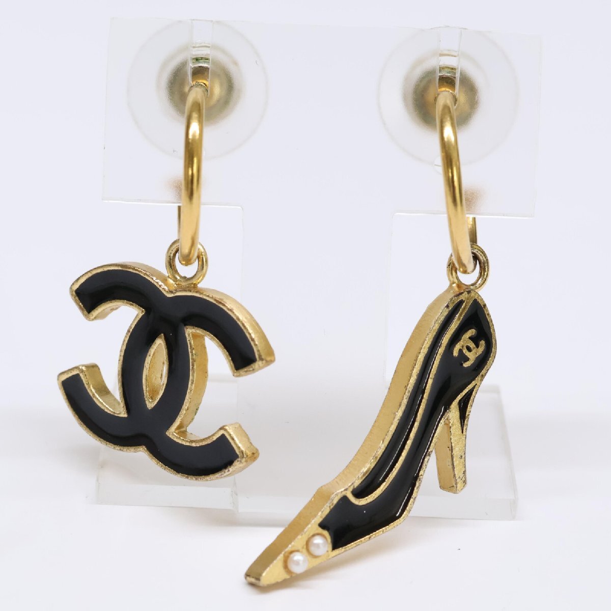 CHANEL シャネル 02A ココパンプスヒールピアス ブラック/ゴールド レディース