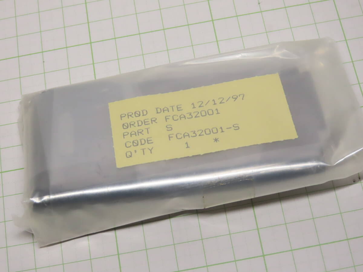 ”FCA32001-S”と印字されたメーカー管理タグと一緒に袋に入れられて保存されていました。該当機種など詳細は不明で、部品の形状や状況から上記の部品と思われますが、確証はありません。