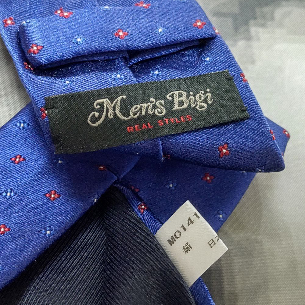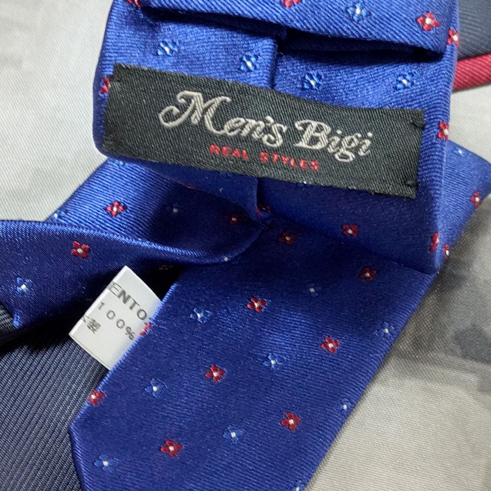光沢がありオシャレ! メンズビギ MEN'S BIGI 美品 微光沢 ネクタイ 斜めストライプ レジメンタル 切替 ナロータイ ミックス M-009103 | |