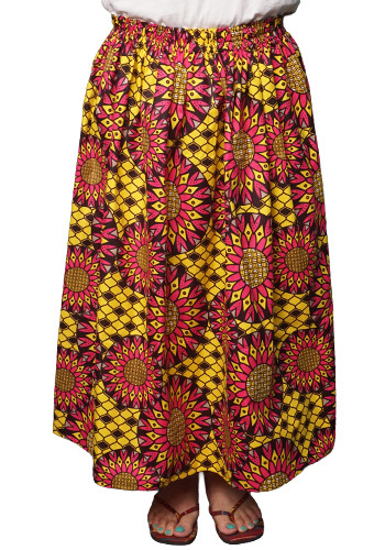 色鮮やかなアフリカンワックスプリントが印象的なフレアスカート。