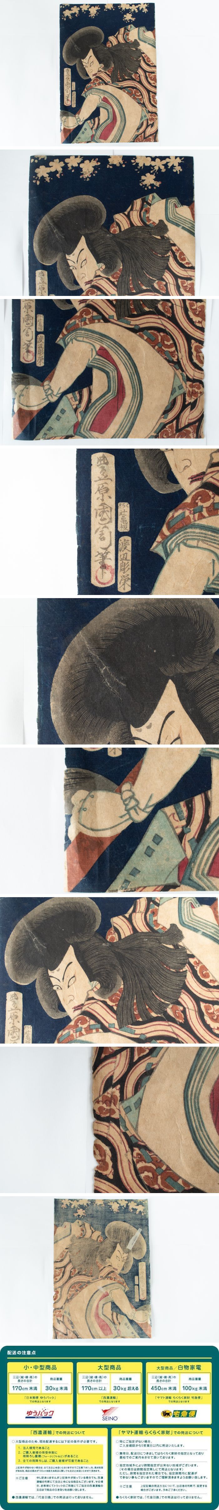 【中古】M▽豊原国周 大友ノ黒主 中村芝翫 1872年 木版画 役者絵 浮世絵 錦絵 大判 3枚揃 (233)