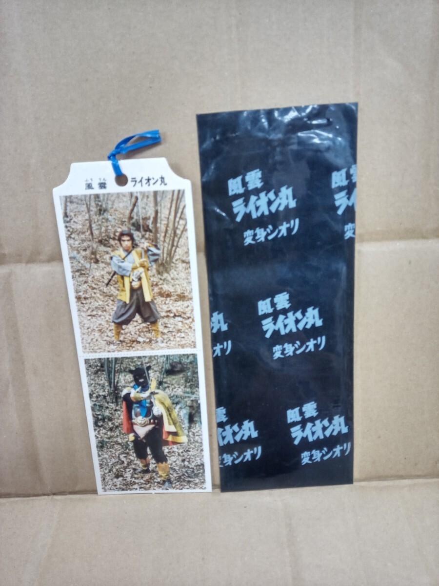 1970年代(1973年)の特撮番組、風雲 ライオン丸 のしおり です。 東洋紙工製、黒いビニール付きで、駄菓子屋の引き物か、何かしらのくじの物と思います。