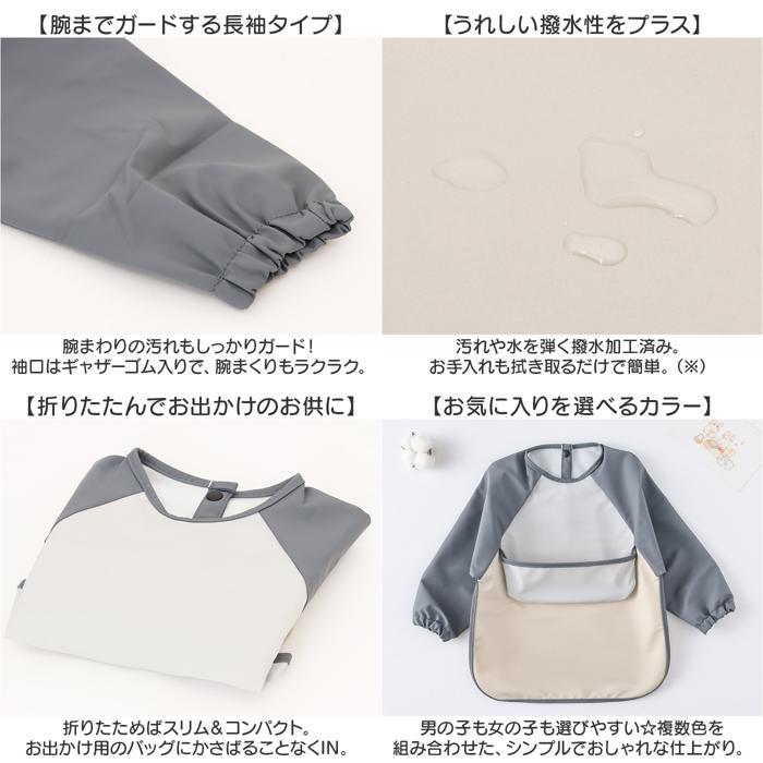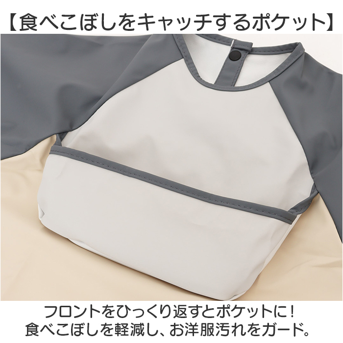 | 商品説明 | ・・【食べこぼしの汚れからしっかり守る】 ・お家でもお出かけ時にも、毎日大活躍!ポケット付きで便利な「お食事エプロン」が新登場。 ・【いつでもどこでも着脱スムーズ】 ・腕を通して、首元後ろのスナップボタンを留めるだけ。元気に動くお子さまにもサッと装着完了☆ ・【食べこぼしをキャッチするポケット】 ・フロントをひっくり返すとポケットに!食べこぼしを軽減し、お洋服汚れをガード。 ・【腕までガードする長袖タイプ】 ・腕まわりの汚れもしっかりガード!袖口はギャザーゴム入りで、腕まくりもラクラク。 ・【うれしい撥水性をプラス】 ・汚れや水を弾く撥水加工済み。お手入れも拭き取るだけで簡単。 ・(※)完全防水ではありません。 ・【折りたたんでお出かけのお供に】 ・折りたためばスリム&コンパクト。お出かけ用のバッグにかさばることなくIN。 ・【お気に入りを選べるカラー】 ・男の子も女の子も選びやすい☆複数色を組み合わせた、シンプルでおしゃれな仕上がり。 |