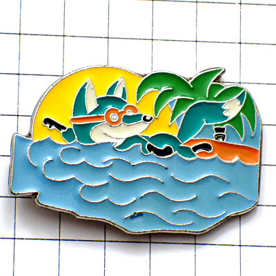 "ピンバッジ・泳ぐキツネ狐ゴーグル眼鏡クロール太陽ヤシの木"の商品説明 | |