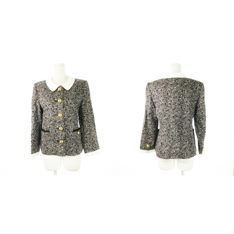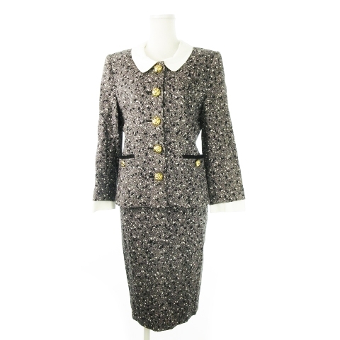 キミジマ KIMIJIMA BOUTIQUE セットアップ スーツ 上下 ステンカラージャケット タイトスカート ツイードプリント 9 グレー