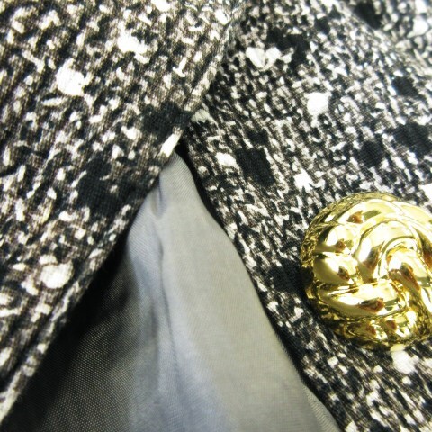 【仕様】ジャケット フロントボタン 総裏地 フェイクレイヤードデザイン ゴールドボタン ボトムス ひざ丈 裏地あり サイドファスナー バックスリット 10.5cm