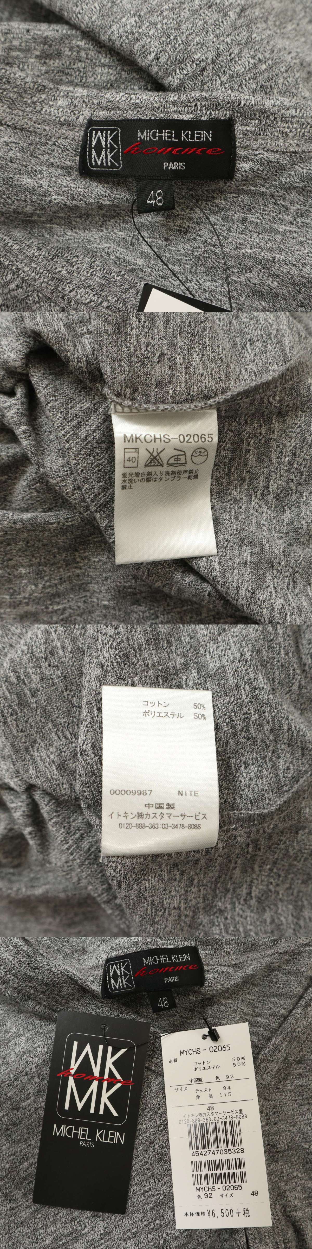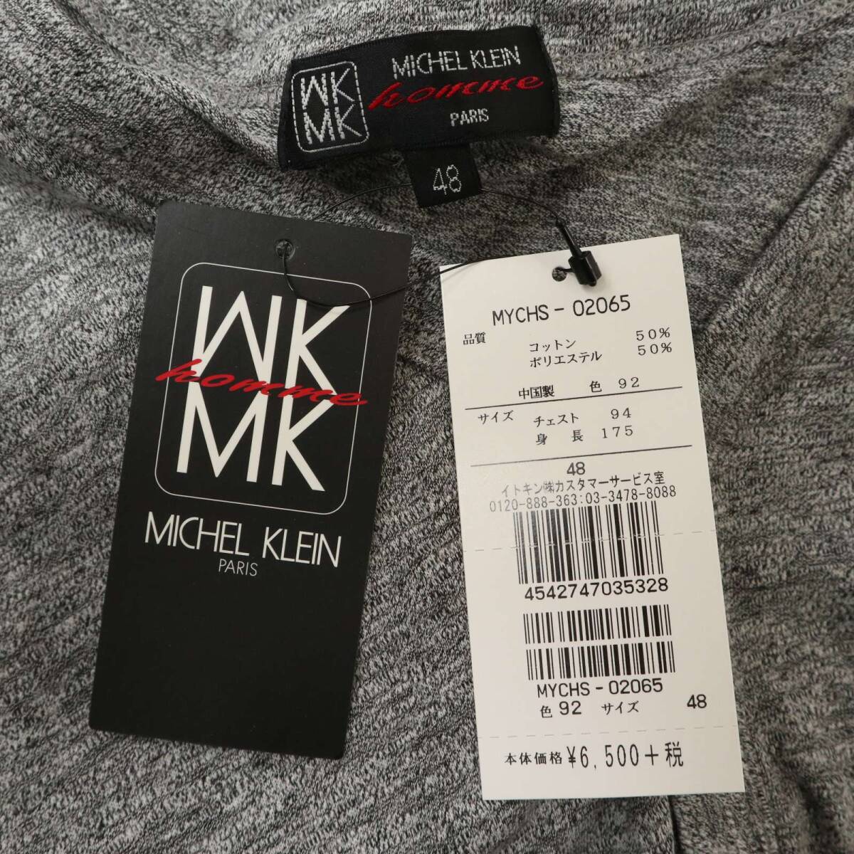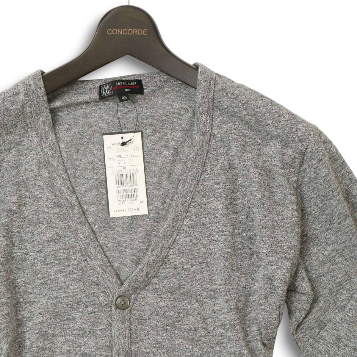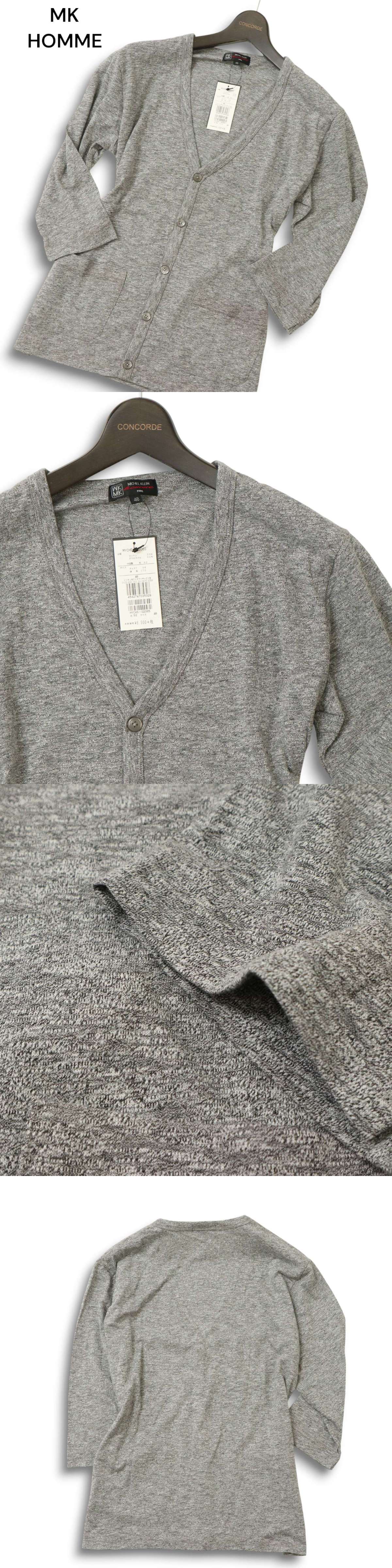 【新品 未使用】 MK HOMME ミッシェルクラン オム 春夏★ 7分袖 Vネック ニット カーディガン Sz.48 メンズ 灰