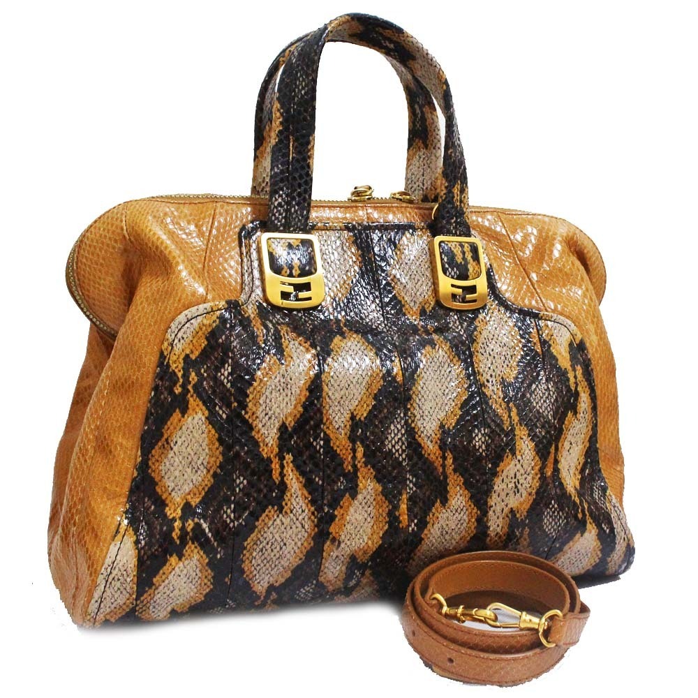 フェンディ 2WAY カメレオン2 ハンドバッグ レディース パイソン レザー ライトブラウン 8BL110 中古 送料無料 FENDI