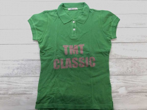 ティーエムティー TMT CLASSIC アメカジ スポーツ サーフ 両面プリント 鹿の子 半袖ポロシャツ レディース コットン100% 日本製 S 緑 です。