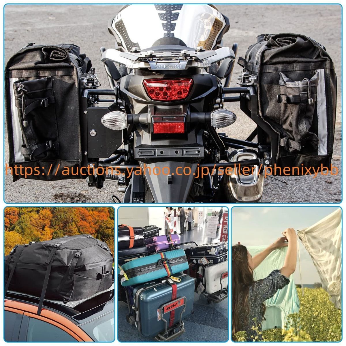 キャンプ、サーフィン、アウトドア、レースなどのレジャーや、引越しなどの荷物固定や締付、ロープワークが苦手な貴方にも荷物の固定や締め付けが出来ます。