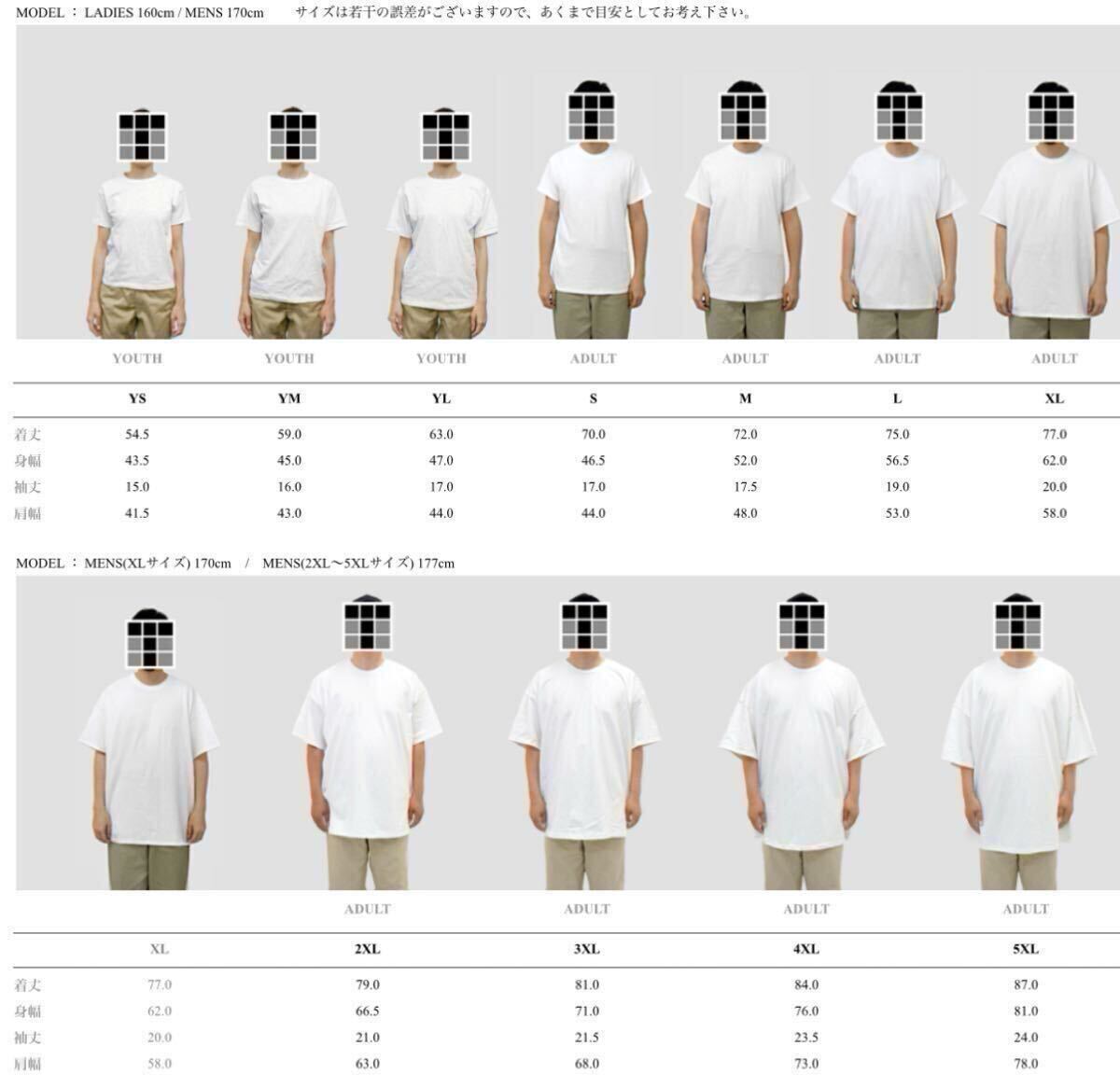 お手持ちのTシャツと記載の大きさ(cm)を比べてご自身で判断ください。