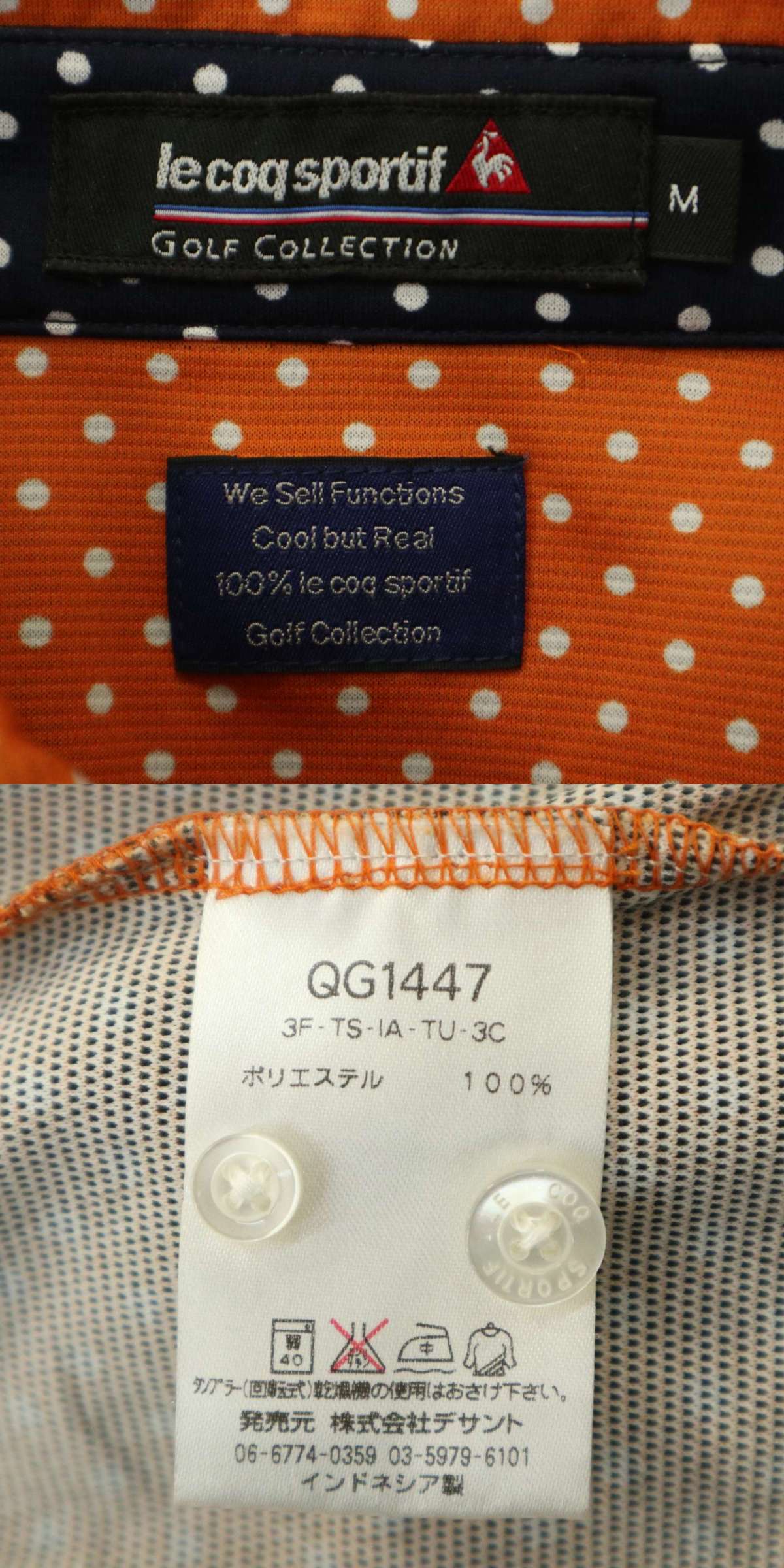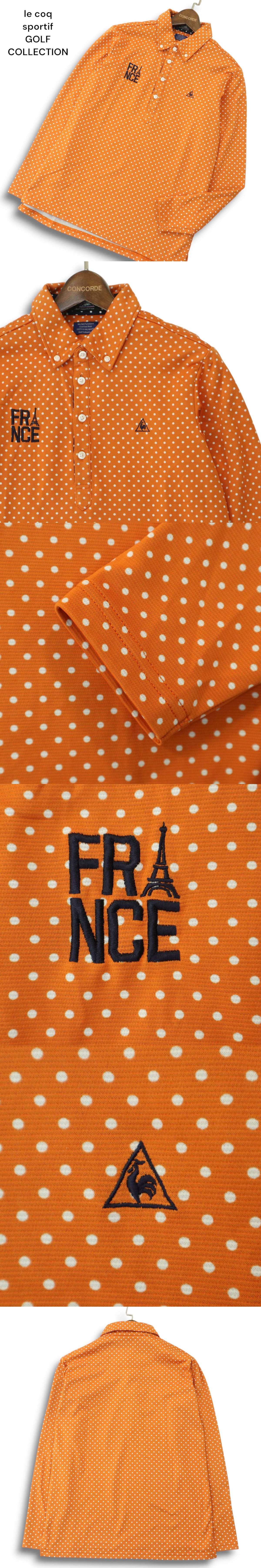le coq sportif GOLF COLLECTION ルコック ゴルフ 通年 ロゴ刺繍★ ドット柄 長袖 ボタンダウン ポロシャツ Sz.M メンズ