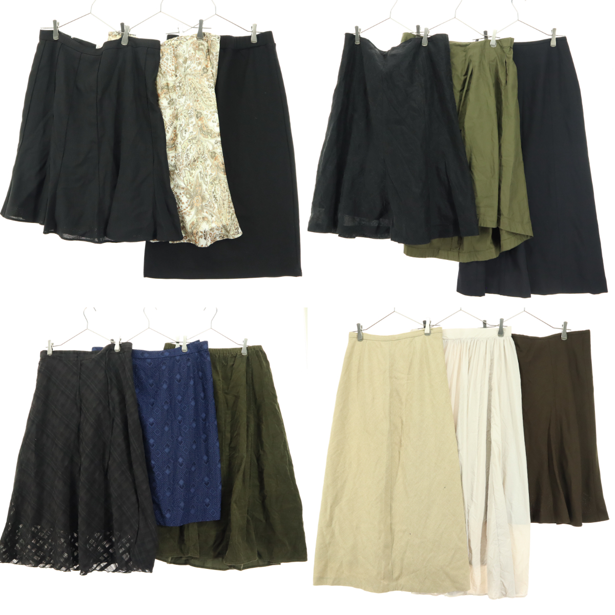 古着 まとめ売り 16点 レディース 秋冬 カジュアル サイズLL-3L スカート プリーツ タイト フレア ロング ミディアム ミモレ チェック柄