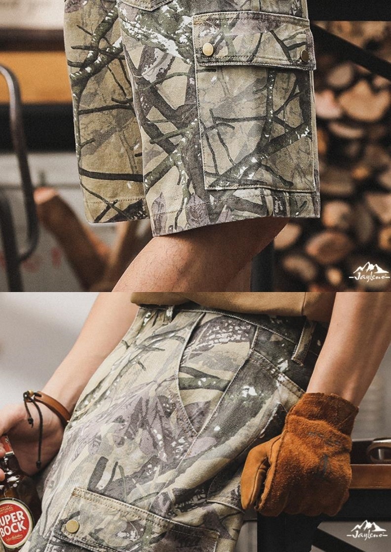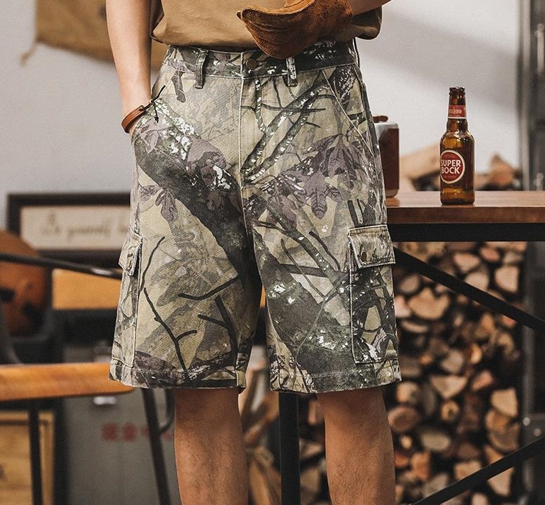 クロップドパンツ ショートパンツ 五分丈 カーゴパンツ ミリタリーショートパンツ メンズ・新品 ハーフパンツ ショーツ【J202404061940】迷彩W28